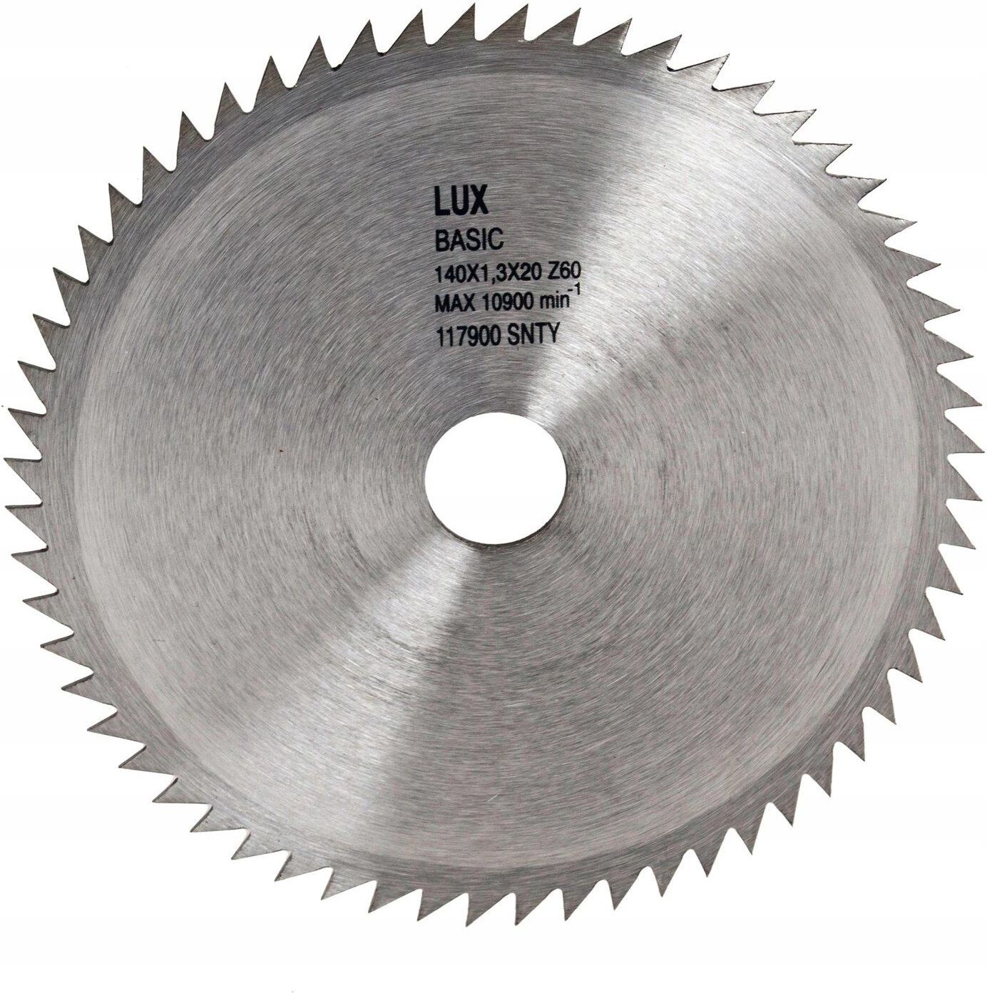 LUX Tarcza zębata śr. 140 mm x 20 mm 60 zębów Producent: LUX-TOOLS Tarcza zębata LUX-TOOLS o średnicy 140 mm i otworze 20 mm świetnie nadaje się do ręcznych pił tarczowych do cięcia miękkich, twardych i egzotycznych gatunków drewna (wzdłuż i wszerz względem rysunku słojów), płyt wiórowych, drewna …