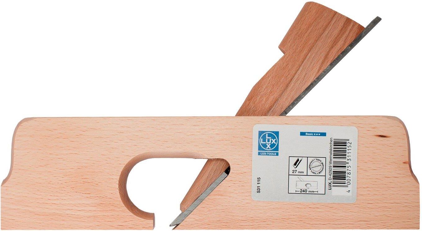 Strug drewniany LUX-TOOLS. Praktyczne narzędzie z białego drewna bukowego o szerokości ostrza 27 mm. Idealnie nadaje się do heblowania wąskich i trudno dostępnych miejsc, np. ram okiennych. Wykonany zgodnie z normą DIN. Specyfikacja techniczna Waga: 384 g Wysokość: 12,5 cm Szerokość: 24,0 cm Głębokość / Grubość: 2,7 cm