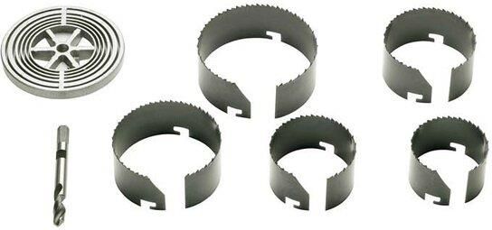 Zestaw 5 pił otworowych LUX-TOOLS. Zestaw zawiera uniwersalną tarczę mocującą i komplet otwornic o średnicach: 60 mm, 67 mm, 74 mm, 83 mm oraz 95 mm. Są to wszystkie popularne rozmiary, umożliwiające montaż podtynkowych puszek elektrycznych. Piły te są stosowane również do precyzyjnego wycinania otworów na przewody rurowe i przepusty kablowe w miękkich materiałach, jak np.w drewnie, tworzywie sztucznym i płytach gipsowo-kartonowych. Specyfikacja techniczna