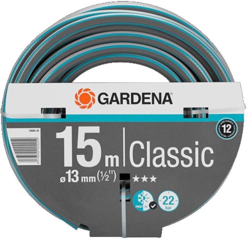 .   Classic wąż 13 mm (1/2") Wąż wykonany z PVC, 15 m GARDENA Classic wąż ogrodowy jest odporny na ciśnienie robocze wody i na odkształcenia. Nie zawiera toksycznych ftalanów ani metali ciężkich. Jest również odporny na promieniowanie UV. Do łączenia z innymi elementami Original GARDENA …