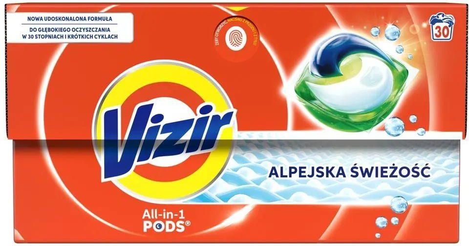Vizir Kapsułki do Prania Alpine Fresh Pods – 22 sztukiKapsułki do prania opracowane z myślą o dokładnym i skutecznym praniu, także w niskich temperaturach oraz krótkich cyklach. Skoncentrowana formuła Vizir + Fairy Effect zapewnia olśniewającą czystość i świeżość prania, a kapsułki szybko …