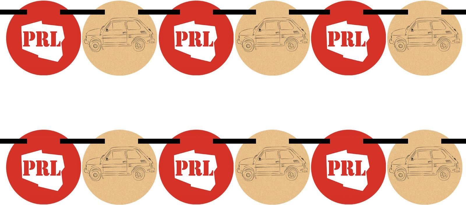 Papierowa girlanda z zestawu PRL, idealna na zabawę i imprezę w starym stylu. Długość: 500 cm. Wymiar flagi: 9,5 cm. Jeden komplet zawiera 12 dużych elementów.