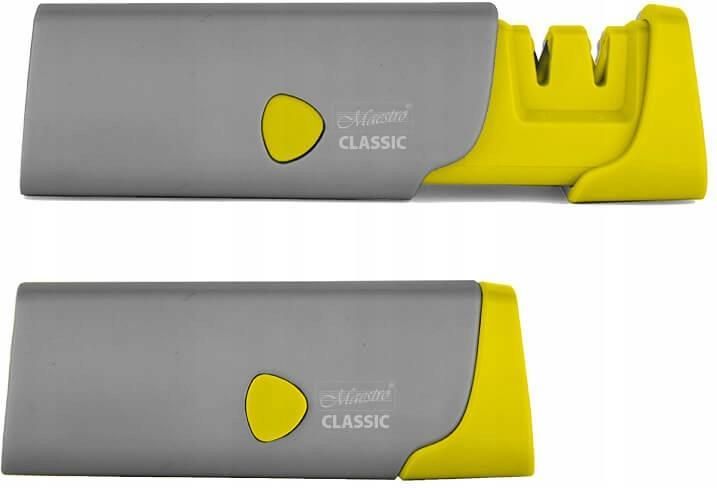 Ostrzałka do noży kuchennych MR1492 Maestro. kolor: żółty Świetna i profesjonalna ostrzałka od noży kuchennych dwu etapowa. Pierwszy etap ostrzenie wstępne czyli mocne, etap drugi ostrzenie wygładzające finalne. Ostrzałka posiada antypoślizgową podstawę dzięki czemu mamy wysoki komfort i …