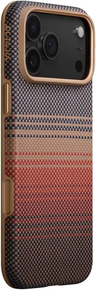 Etui PITAKA Aramid UltraGuard Etui Aramid UltraGuard to połączenie minimalistycznego designu i nowoczesnej ochrony. Zostało stworzone z myślą o użytkownikach, którzy chcą chronić swój telefon. Konstrukcja wykonana z włókna aramidowego zapewnia lekkość, trwałość i elegancki charakter. To etui, które podkreśla naturalny design smartfona, a jednocześnie gwarantuje pewną ochronę w codziennym użytkowaniu. Wyjątkowe właściwości włókna Podstawą serii Aramid UltraGuard jest włókno aramidowe, które na co dzień znajduje zastosowanie w przemyśle lotniczym czy ochronnym. W etui PITAKA materiał ten zyskuje nowe, designerskie oblicze. Jest niezwykle odporny na ścieranie i zarysowania, a jednocześnie lekki i cienki, co sprawia, że doskonale nadaje się do codziennego użytkowania. Aramid zachowuje swoje właściwości przez długi czas, nie odbarwia się i nie traci pierwotnej faktury. Dodatkowo jego charakterystyczny splot nadaje etui nowoczesny wygląd, wyróżniający się na tle standardowych akcesoriów. To trwałość, która idzie w parze ze stylem. Dopracowane detale Metalowe osłony przycisków zapewniają pewny, satysfakcjonujący klik. Precyzyjne wycięcia gwarantują łatwy dostęp do przycisków i portów, a podniesione krawędzie wokół aparatu chronią obiektywy przed kontaktem z powierzchniami. Wytrzymałe włókno aramidowe układa się w charakterystyczny splot, który nadaje etui nowoczesny i elegancki wygląd. Gładkie krawędzie i spójna konstrukcja podkreślają dopracowanie detali. Etui jest w pełni kompatybilne z MagSafe oraz przyjazne dla ładowania bezprzewodowego, co oznacza, że nie trzeba go zdejmować, aby korzystać z nowoczesnych akcesoriów i ładowarek. Dane Techniczne Marka PITAKA Seria Aramid UltraGuard Typ Hardcase Materiał Włókno aramidowe / technologia Fusion Weaving Kolor Sunset Kompatybilność iPhone 17 Pro Max Ładowanie Kompatybilne z MagSafe i ładowaniem bezprzewodowym