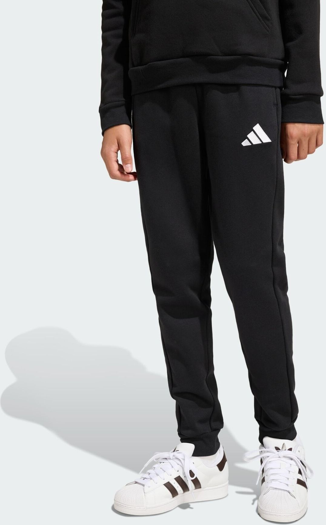 Spodnie adidas dla dzieci to świetny wybór dla aktywnych, młodych sportowców. Standardowy krój gwarantuje maksymalną swobodę ruchów, a szerokie mankiety zapobiegają podciąganiu się nogawek i podwiewaniu chłodnego powietrza. Elastyczna, regulowana sznurkiem talia dopasowuje się do sylwetki Twojego dziecka, stabilizując spodnie w trakcie ruchu. Otwarte kieszenie boczne są wygodnym miejscem na podręczne drobiazgi i zmarznięte dłonie. Materiał z wewnętrznym ociepleniem to mieszanka naturalnej bawełny i syntetycznych włókien, które zapewniają przyjemny komfort i ochronę przed chłodem. W produkcji tych spodni wykorzystano poliester z recyklingu, co pozwala oszczędzać naturalne zasoby środowiska. Wyszywane logo jest autentycznym dopełnieniem całości i podkreśla sportowy styl modelu. Spodnie adidas pozwolą Twojemu dziecku wygodnie spędzić aktywny dzień w szkole i zadbają o jego komfort w chwilach odpoczynku. Materiał: 70% bawełna, 30% poliester z recyklingu
