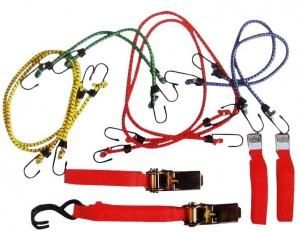 Taśmy i ściągacze do bagażu 12 szt., ściągacze gumowe 40 cm - 2 szt., ściągacze gumowe 60 cm - 2 szt., ściągacze gumowe 80 cm - 2 szt., ściągacze gumowe 100 cm - 2 szt., taśma do ładunku z hakiem typu S 2.5 mm x 5 m - 1 szt., taśma do ładunku 2.5 mm x 5 m - 1 szt., pasy do bagażu 2.5 mm x 5 m - 2 szt....