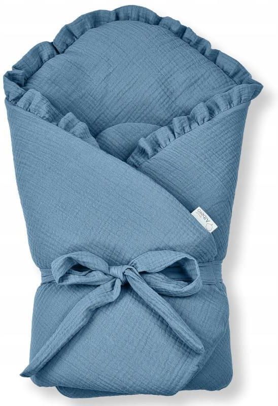 Muślinowy rożek niemowlęcy Cotton Color - niebieski, Albero Mio Rożek niemowlęcy muślinowy polskiej marki Albero Mio. Rożek niemowlęcy wykonany z delikatnej i miękkiej tkaniny double gaze, czyli 100% muślinu bawełnianego. To praktyczny i wielofunkcyjny produkt, który zapewnia komfort oraz pełne …