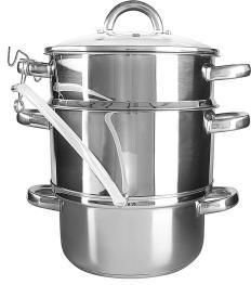 Sokownik ze stali nierdzewnej 8 l 020401630 Kolor: Srebrny Materiał: Stal nierdzewna Marka: Altom Design Powłoka: Powłoka nierdzewna Zastosowanie: Zmywarka, Kuchenka indukcyjna, Kuchenka ceramiczna, Kuchenka elektryczna, Kuchenka gazowa Elementy i wymiary sokownika 1 x szklana pokrywa: średnica: 26,5 cm, wysokość z uchwytem: 6,5 cm 1 x garnek na wodę: średnica: 26,5 cm, wysokość: 11,5 cm 1 x zbiornik na sok z wężykiem: średnica: 26,5 cm, wysokość: 16 cm 1 x pojemnik na owoce: średnica: 26,5 cm, wysokość: 16,5 cm pojemność sokownika: 8 l szerokość sokownika z uchwytami: 34 cm wysokość całego złożonego sokownika z pokrywą: 41 cm wysokość całego złożonego sokownika bez pokrywy: 33,5 cm długość kranika: 3 cm 1 x wężyk: długość: 32 cm Dlaczego warto kupić ? Sokownik wykonany ze stali nierdzewnej, która jest odporna na korozję Dzięki solidnej konstrukcji sokownik może być używany przez długie lata Naczynie jest łatwe w utrzymaniu czystości, można je bezpiecznie myć w zmywarce Wężyk ułatwia bezpośrednie przelanie soku do mniejszych naczyń ( słoik, butelka ) Każdy element posiada wygodne rączki, które ułatwią przenoszenie naczyń wraz zawartością Szklana pokrywa z ujściem na parę ułatwia kontrolowanie procesu gotowania bez konieczności jej podnoszenia Jest odporny na działanie kwasów i soków, co zapewnia długotrwałe użytkowanie Przystosowany do używania na wszystkich rodzajach kuchenek, w tym indukcyjnej Pozostałości owoców po uzyskaniu soku, gromadzące się w najwyższym pojemniku, można wykorzystać do przyrządzenia dżemu Wszystkie elementy zestawu zostały idealnie dopasowane, tworząc idealną całość Dzięki sokownikowi ze stali nierdzewnej możesz przygotować szeroki zakres przetworów, w tym Świeże soki owocowe i warzywne, bogate w witaminy i minerały Koktajle zdrowotne i smoothie, które dostarczą Ci energii na cały dzień Domowe dżemy i musy owocowe, idealne do smarowania pieczywa lub dodatków do deserów Zdrowe zupy krem, które można przygotować z warzyw wyciśniętych sokownikiem Dzięki sokownikowi ze stali nierdzewnej możesz cieszyć się bogactwem smaków i korzyści zdrowotnych, jakie oferują świeże przetwory warzyw i owoców, a także korzystać z wygody i trwałości tego wysokiej jakości narzędzia kuchennego. Ciesz się smakiem pysznych soków i odkryj jak zdrowe nawyki mogą wprowadzić więcej radości i energii do codziennego życia. Sokownik - praktyczne urządzenie do wyciskania świeżych soków z owoców i warzyw, idealne dla zdrowego stylu życia. Zobacz ten produkt na żywo! Zapraszamy do obejrzenia naszego filmiku! Dzięki niemu możesz z bliska przyjrzeć się funkcją, wyglądowi i działaniu sokownika. Skopiuj link: https://www.youtube.com/watch?v=mJQhYVe7dq4 O MARCE Altom Design, to marka o szerokim wachlarzu asortymentu. Znana na polskim rynku od długiego czasu. Marka charakteryzuje się niepowtarzalnymi i wyjątkowymi zdobieniami oraz najwyższej jakości materiałami, dzięki czemu posłuży na długie lata.