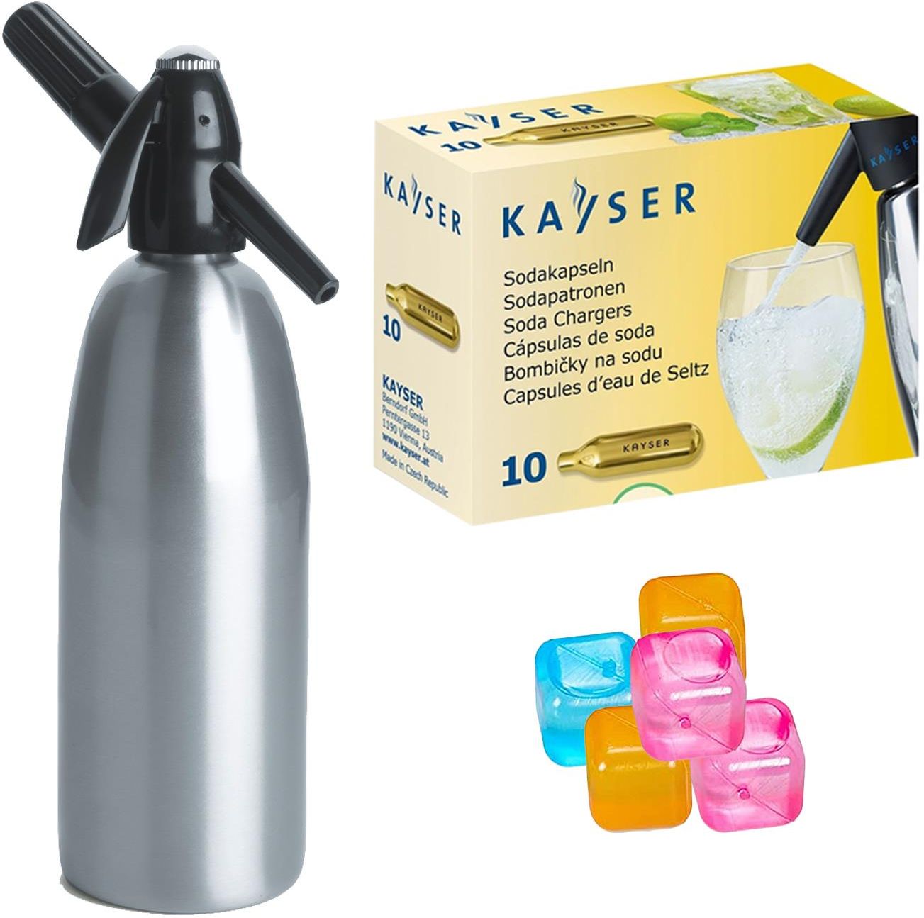 Sprytny Przygotuj dla siebie i rodziny delikatnie gazowaną wodę bez konieczności noszenia ciężkich butelek z wodą ze sklepu. Możesz przechowywać swój saturator w lodówce dzięki temu serwowane napoje będą zawsze schłodzone oraz dadzą przyjemne orzeźwienie w upalne dni. Wysoka jakość Saturatory wykonane są z wysokiej jakości aluminium. Mają pojemność 1 litra. Przy użyciu wody z kranu lub filtra węglowego w domowych warunkach możesz cieszyć swoją ulubioną wodą gazowaną. EKO Produkt ekologiczny, wielorazowego użytku, przyczyni się do redukcji ilości odpadów w postaci butelek typu PET. Niezwykle prosty w obsłudze Niezwykle łatwy w użytkowaniu, a dzięki dołączonym akcesoriom przygotowanie wody gazowanej to prawdziwa przyjemność. Smaczne, orzeźwiające napoje Domową wodę gazowaną możesz szybko zmienić w ulubiony napój. Do szklanki dodaj plasterki ulubionych owoców np, cytryny, pomarańczy, liść mięty i delektuj się pyszną, zdrową, a w dodatku nisko-słodzoną wodą smakową. Kostki lodu do napojów W zestawie znajdują cię kostki lodu wielokrotnego użytku. Wystarczy, że wrzucisz kostki na kilka godzin do zamrażalnika. Woda zamknięta w kostce, po zamrożeniu długo utrzymuje chłodną temperaturę napojów Kostki, w odróżnieniu od zamrożonej wody nie rozcieńczają napoju, ponieważ nawet po stopieniu, woda zostaje we wnętrzu kostki. Tworzywo z którego są wykonane, nie pochłania zapachów oraz jest bardzo trwałe, dzięki czemu można używać ich wielokrotnie W zestawie Saturator 10 naboi 5 kostek lodu Instrukcja obsługi Specyfikacja Kolor: Srebrny Rodzaj naboju: 8g CO2 Materiał wykonania: Metal-Aluminium, tworzywo sztuczne Przeznaczenie: Przygotowanie wody gazowanej Kompaktowy rozmiar, z łatwością zmieści się w lodówce: Tak Zapewnia gazowaną wodę bez konieczności noszenia ciężkich butelek ze sklepu: Tak PojemnośćŁ 1l Wymiary opakowania: 10,5x10,5x33,5 cm Przeznaczony do kontaktu z żywnością: Tak