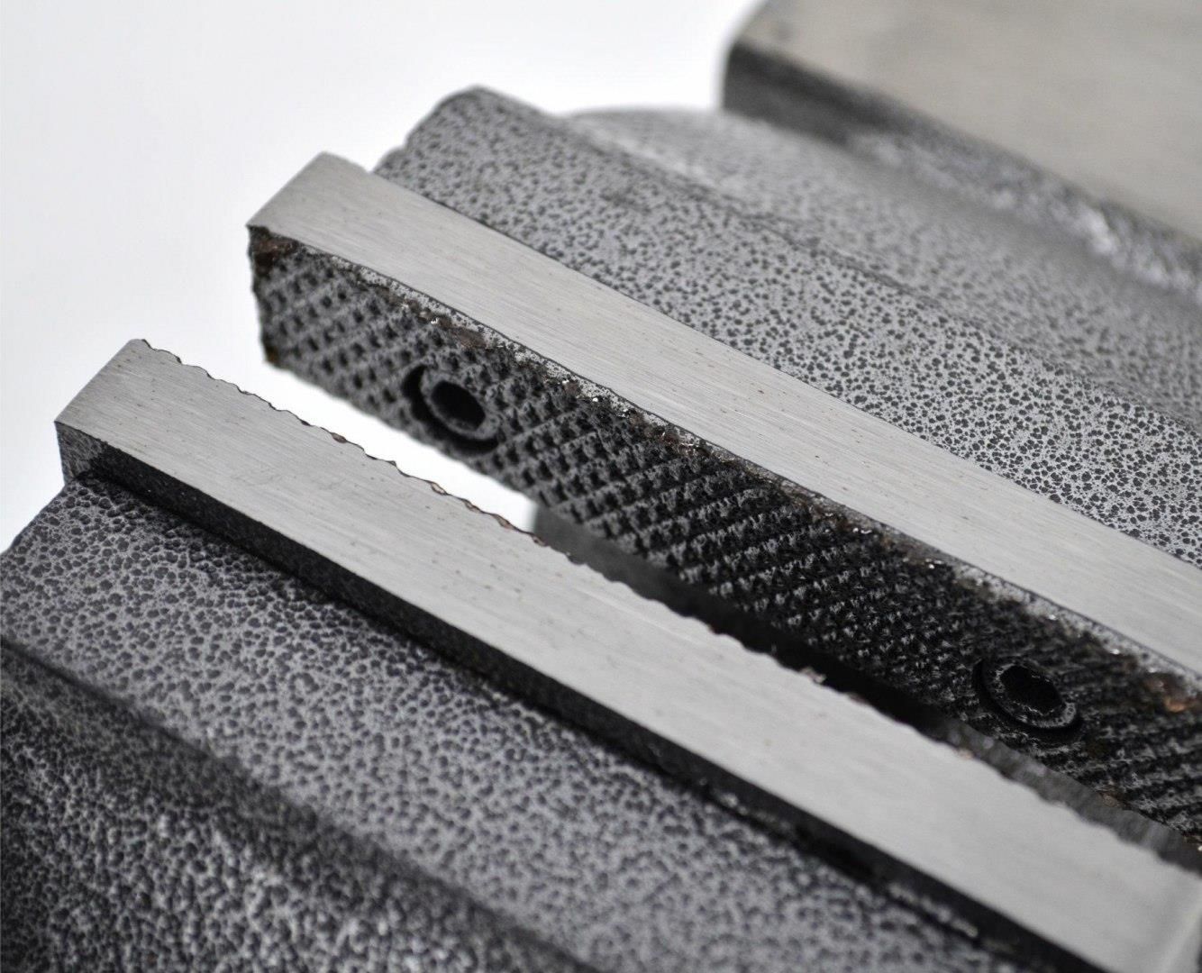 Wykonane z żeliwa sferoidalnego SG dla maksymalnej wytrzymałości i odporności na uderzenia. Żeliwo z grafitem sferoidalnym tworzy znacznie silniejszą strukturę molekularną niż zwykłe żeliwo. Pokryte farbą proszkową do ochrony przed korozją z efektem młotkowym. Podstawa obrotowa 360° montowana bezpośrednio na stole warsztatowym za pomocą śrub. Wymienne, hartowane oraz ryflowane szczęki pozwalają na mocne i bezpieczne zaciśnięcie obrabianego detalu. Śruba pociągowa z pokrętłem i końcówkami zabezpieczającymi, uchwyt do mocowania rur oraz zintegrowane kowadło. Stalowe elementy konstrukcyjne chromowane zapewniające długotrwałe użytkowanie. Sprawdzi się podczas prac naprawczych, remontowych oraz konstrukcyjnych. Dane techniczne: Szerokość szczęk: 6``/ 150mm Waga: 16 kg