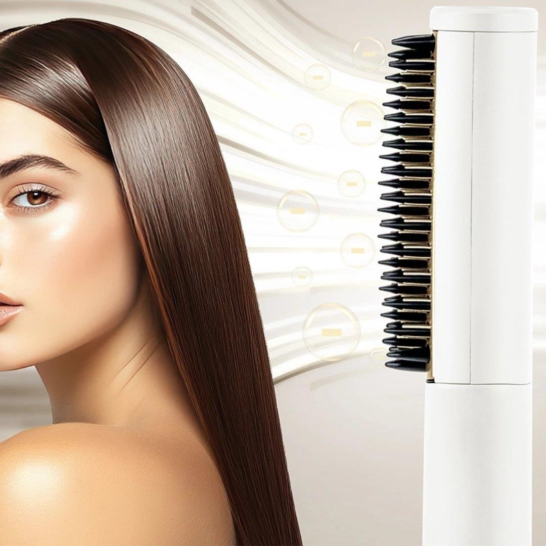 Mini prostujący grzebień do włosów FashionTV FTV-0148 Matte Cream Gold Praktyczny i stylowy - mini prostujący grzebień FashionTV to idealne rozwiązanie dla osób, które chcą mieć zawsze idealnie wygładzone włosy, nawet w podróży. Dzięki ceramicznej powłoce na aluminiowym grzebieniu prostowanie włosów jest szybkie i delikatne, a funkcja szybkiego nagrzewania pozwala natychmiast rozpocząć stylizację. Kompaktowy, bezprzewodowy i łatwy w użyciu - ten grzebień to idealny towarzysz w pracy, w podróży i na co dzień. Najważniejsze cechy produktu: Maksymalna temperatura: 180°C Materiał: aluminium z ceramiczną powłoką Kolor: kremowy / złoty Akcesoria w zestawie kabel USB Typ-C do ładowania torba podróżna Ładowanie: 3 godziny Czas pracy: do 30 minut Funkcje dodatkowe: szybkie nagrzewanie kompaktowy i przenośny bezprzewodowy, łatwy w użyciu wbudowany akumulator 5000 mAh automatyczne wyłączenie po 30 minutach włącznik on/off wskaźnik LED