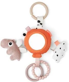 Done By Deer To-Go Activity Mirror Happy Clouds Papaja Zabawka Done By Deer To-Go Activity Mirror Happy Clouds Papaja to doskonały wybór dla rodziców, którzy pragną wspierać rozwój swoich dzieci. Dzięki atrakcyjnemu designowi oraz funkcjonalności, lusterko to staje się idealnym towarzyszem w wózku, łóżeczku czy foteliku samochodowym. Oferując nie tylko rozrywkę, ale także stymulując zmysły malucha, produkt ten zachęca do odkrywania otaczającego świata. Zastosowanie Zabawka sensoryczna Happy Clouds Papaja jest wszechstronnym akcesorium, które można wykorzystać w różnych sytuacjach. Idealnie sprawdzi się zarówno w wózku, łóżeczku, jak i foteliku samochodowym, zapewniając dziecku możliwość zabawy wszędzie, gdzie się znajduje. Interaktywne elementy przyciągają uwagę oraz zachęcają do odkrywania otaczającego świata. Funkcje Zawieszka Happy Clouds Papaja oferuje szereg funkcji, które wspierają rozwój dziecka. Wśród nich znajdują się: bezpieczne lusterko, które pozwala maluchowi na obserwację swojego odbicia, sensoryczne elementy o różnorodnej fakturze i kolorach, takie jak miękki hipopotam Ozzo czy grzechocząca chmurka, grzechotki i inne dźwiękowe elementy, które rozweselają dziecko i zachęcają do interakcji, elementy do chwytania, które są dostosowane do małych rączek, co ułatwia dziecku zabawę. Dzięki tym funkcjom, Happy Clouds Papaja staje się nie tylko zabawką, ale także narzędziem do rozwoju umiejętności motorycznych i sensorycznych dziecka. Materiał Zawieszka została stworzona z wysokiej jakości tkaniny poliesterowej, co zapewnia jej trwałość i wytrzymałość. Wypełnienie z recyklingowanego włókna poliestrowego dodatkowo podkreśla dbałość producenta o środowisko. Taki dobór materiałów sprawia, że zabawka jest przyjemna w dotyku, co jest bardzo istotne dla komfortu dziecka. Wymiary Wymiary zabawki to 26 cm długości, 25 cm szerokości oraz 3 cm wysokości. Dzięki tym rozmiarom, Happy Clouds Papaja jest idealnie dopasowana do małych rączek, co ułatwia dziecku interakcję. Zabawka jest przeznaczona dla dzieci od dnia narodzin, co czyni ją idealnym wyborem na prezent. Dodatkowe funkcje Zabawka Happy Clouds Papaja posiada również praktyczne cechy, które zwiększają jej funkcjonalność: możliwość mocowania za pomocą klipsów lub rzepów, co ułatwia przymocowanie do wózka, łóżeczka czy fotelika, łatwa pielęgnacja – wystarczy przetrzeć ją wilgotną ściereczką, co umożliwia utrzymanie jej w czystości. Rozwój zmysłów Zawieszka Happy Clouds Papaja doskonale wspiera rozwój zmysłów dziecka. Różnorodność tekstur oraz dźwięków stymuluje rozwój wzroku, słuchu oraz dotyku, co jest niezwykle ważne w pierwszych miesiącach życia. Poprzez zabawę, dziecko ma możliwość rozwijania swoich umiejętności i odkrywania otaczającego go świata. Certyfikaty Produkt posiada certyfikat CE, co potwierdza jego zgodność z europejskimi normami bezpieczeństwa. Dzięki temu rodzice mogą być pewni, że wybierają produkt, który spełnia wysokie standardy jakości. Zabawka Happy Clouds Papaja to nie tylko źródło radości, ale także wartościowe narzędzie wspierające rozwój dziecka w radosny i kreatywny sposób.