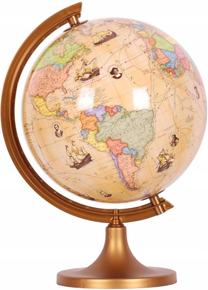 Globus 250mm Mapa Trasami Odkrywców Podświetlana z opisem Świat, dziś nam znany odkrywany był od zarania dziejów człowieka, ale jedynie nieliczni z jego odkrywców na stałe zapisali historię swoich odkryć na kartkach dziejów. Wyruszamy więc w podróż TRASAMI ODKRYWCÓW?? Informacje o wyprawach i …