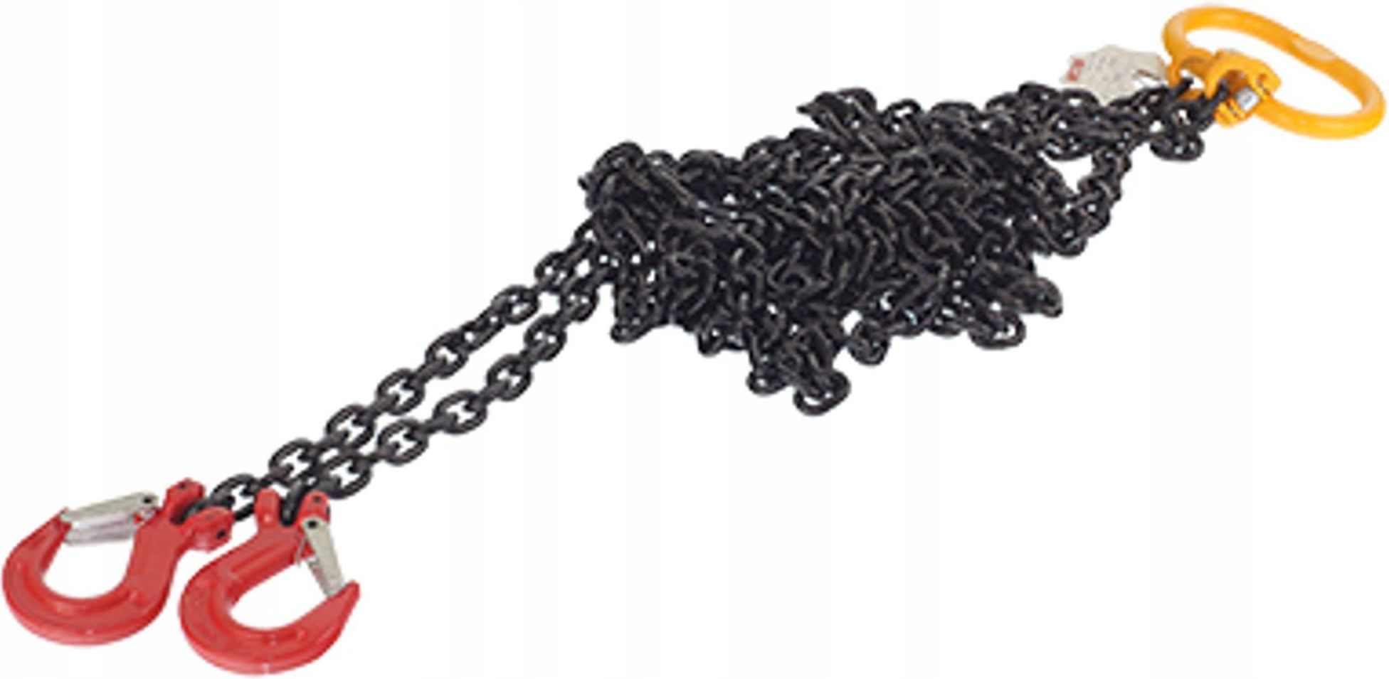 ZAWIESIE ŁAŃCUCHOWE 2,8T , 3M, 2C GRUBOŚĆ ŁAŃCUCHA 8MM Opis produktu oraz dane techniczne Zawiesie Łańcuchowe 2,8T 3M 2C Grubość Łańcucha 8mm Zawiesie łańcuchowe 2-cięgnowe rozmiar 8 klasa 8 WLL= 2,8T długość 3 M zakończone hakiem z zabezpieczeniem Udźwig: 2,8T Ilość łańcuchów: 2 Średnica łańcucha: 8mm Długość każdego łańcucha: 3 metry Materiał: Stal stopowa – gatunek: 8 (odporna na korozje ) Klasa Łańcucha: GR80 Współczynnik bezpieczeństwa: 4:1 Wykonane wg normy PN-EN-818-4 z przetestowanych elementów. Każde zawiesie posiada indywidualną tabliczkę znamionową HE-GMP28T3M8