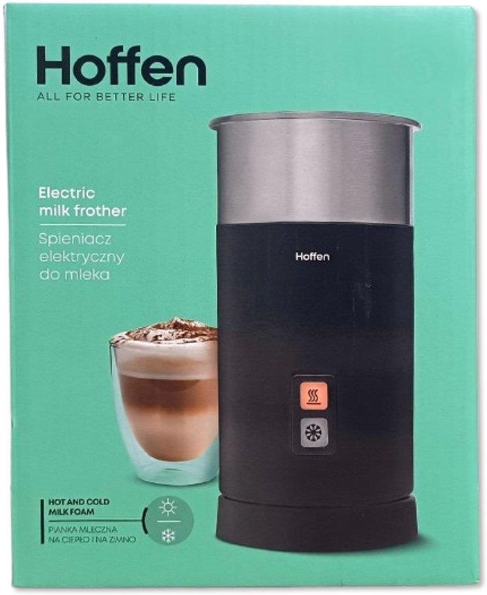 Spieniacz do mleka z kubkiem Hoffen 300 ml – idealny do kawy w domu i w podróży Zamień każdą filiżankę kawy w wyjątkowe doświadczenie dzięki spieniaczowi do mleka Hoffen z kubkiem o pojemności 300 ml. To przenośne urządzenie łączy prostotę obsługi z funkcjonalnością, umożliwiając przygotowanie perfekcyjnej mlecznej pianki w dowolnym miejscu. Najważniejsze cechy Bezprzewodowa konstrukcja: zasilanie na baterie (2×AA w zestawie) zapewnia swobodę użytkowania bez konieczności podłączania do prądu. Trzepaczka ze stali nierdzewnej: gwarantuje trwałość i efektywne spienianie mleka. Praktyczny kubek z pokrywką: o pojemności 300 ml, idealny do przygotowywania napojów zarówno w domu, jak i w podróży. Łatwa obsługa: wystarczy podgrzać mleko, wlać do kubka (nie przekraczając połowy objętości), zanurzyć spieniacz i włączyć urządzenie. Kompaktowy i lekki design: doskonały do użytku w domu, biurze czy podczas podróży. Specyfikacja techniczna Pojemność kubka: 300 ml Zasilanie: 2×AA baterie (w zestawie) Materiał trzepaczki: stal nierdzewna Kolor: czarny Waga netto: 0,16 kg Waga brutto: 0,24 kg Idealny wybór dla Miłośników kawy, którzy cenią sobie kremową piankę w domowych napojach. Osób często podróżujących – kompaktowy rozmiar i zasilanie na baterie umożliwiają korzystanie z urządzenia w dowolnym miejscu. Osób poszukujących prostego i funkcjonalnego dodatku do swojej kuchni.​ Z spieniaczem do mleka Hoffen każda chwila z ulubionym napojem staje się wyjątkowa!