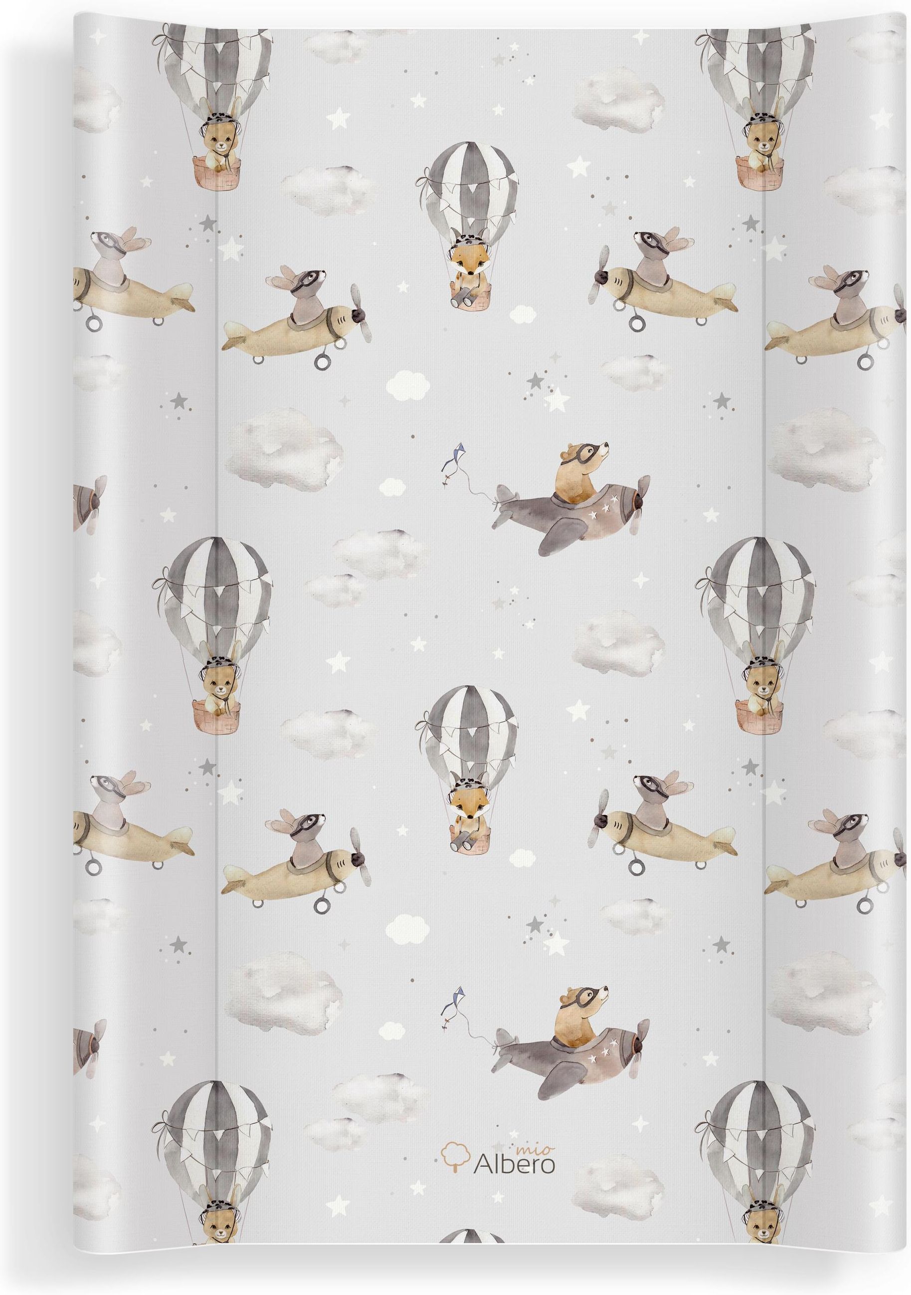 Rozmiar / size: 80x47 (+/-2 cm) do montowania na łóżeczku 140x70cm, posiada stópki zabezpieczające przed zsunięciem się z ramy łóżka / 80x47 (+/- 2 cm) for mounting on a cot in size 140x70 cm, it has feet to prevent it from sliding off the bed frame Przewijak służy do codziennej pielęgnacji niemowlęcia. Pokryty jest bezpieczną dla skóry dziecka folią, nie zawierającą ftalanów. Jego boki są specjalnie wyprofilowane, aby zabezpieczyć Maluszka przed zsunięciem się z przewijaka The changing mat is used for the daily care of the baby. It's covered with a foil that is safe for the child's skin and doesn't contain phthalates. Its sides are specially profiled to protect the baby from sliding off the changing mat Wypełnienie / refill: pianka poliuretanowa / polyurethane foam, MDF
