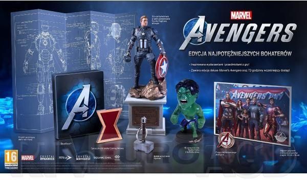 Dołącz do Avengersów w fabularnej, trzecioosobowej rozgrywce i zapanuj nad ich wyjątkowymi mocami, aby ocalić świat przed narastającymi zagrożeniami w nadchodzących latach.     Marvel’s Avengers rozpoczyna się w Dniu A, gdy Kapitan Ameryka, Iron Man, Hulk, Czarna Wdowa i Thor otwierają zaawansowaną technologicznie siedzibę Avengersów w San Francisco i przedstawiają własny lotniskowiec Helicarrier zasilany eksperymentalnym źródłem energii. Święto zmienia się w koszmar, gdy katastrofalny wypadek skutkuje ogromnymi zniszczeniami, a obwinieni o tragedię Avengersi rozwiązują grupę.     Pięć lat później wszyscy bohaterowie są wyjęci spod prawa, a świat stoi na granicy zagłady. Jedyną nadzieją ludzkości jest ponowne zebranie najpotężniejszych bohaterów Ziemi.       Twórz zespoły składające się z maksymalnie czterech graczy, wybierając z członków stale powiększającej się drużyny Avengersów     Stań za sterami kultowych bohaterów jak Iron Man, Kapitan Ameryka czy Czarna Wdowa     Odblokuj potężne umiejętności i nowy ekwipunek, a także personalizuj wygląd swoich bohaterów     Uniwersum będzie stale rozwijane a w grze zabraknie lootboxów i płatnych zawartości.     Edycja Najpotężniejszych Bohaterów Marvel’s Avengers zawiera pamiątki po każdym z Avengersów, zaczerpnięte prosto z wydarzeń z gry, wliczając w to w pełni pomalowaną, 30-centymetrową figurkę Kapitana Ameryki. Zaprojektowana przez artystów z firmy Gentle Giant, ta ekskluzywna, najwyższej jakości figurka z PCW w najdrobniejszych szczegółach oddaje teksturę munduru Kapitana Ameryki. Bez wątpienia będzie to wyjątkowe uzupełnienie twojej kolekcji.   Edycja ta zawiera również Edycję Deluxe gry Marvel’s Avengers w wyjątkowym SteelBooku, figurkę Hulka, brelok do kluczy w kształcie Mjolnira, sprzączkę do paska Czarnej Wdowy, projekty prototypu zbroi Iron Mana, przypinkę honorowego Avengera Kamali Khan oraz pamiątkowe zdjęcie wszystkich Avengersów.