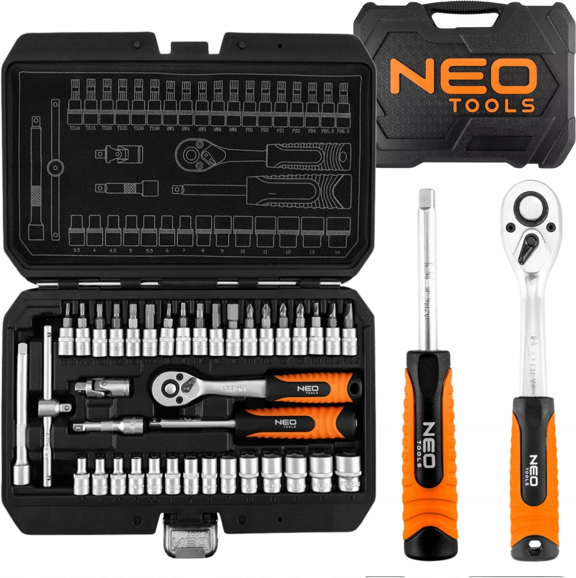 Zestaw kluczy nasadowych 1/4" NEO TOOLS – 38 elementów Funkcjonalny, kompaktowy i wszechstronny zestaw do codziennych prac mechanicznych, serwisowych oraz domowych. W skład kompletu wchodzą m.in. grzechotka 72T, 14 krótkich nasadek sześciokątnych, 18 bitów, przedłużki, przegub uniwersalny oraz dwa rodzaje pokręteł. Wszystkie elementy wykonane są z trwałej stali CrV. Zawartość zestawu 1x grzechotka 72T ¼”, 14x nasadki sześciokątne krótkie ¼”: 3.5, 4, 4.5, 5, 5.5, 6, 7, 8, 9, 10, 11, 12, 13, 14 mm, 18x bity na nasadkach ¼”: SL4, SL5.5, SL6.5; PH1, PH2; PZ1, PZ2; T10, T15, T20, T25, T30, T40; H3, H4, H5, H6, H8; 2x przedłużka ¼”: 50, 100 mm, 1x przegub uniwersalny ¼”, 1x pokrętło z przetyczką ¼” (T-bar) 110 mm, 1x pokrętło do nasadek ¼” 150 mm, walizka. Precyzja i wszechstronność na co dzień Zestaw NEO TOOLS 38 elementów to niezastąpione narzędzie dla każdego, kto ceni precyzję i wygodę pracy. Dzięki rozbudowanemu zestawowi końcówek, bitów i nasadek, produkt sprawdzi się w wielu codziennych zastosowaniach – od majsterkowania po naprawy w terenie. Płynna praca w trudno dostępnych miejscach Grzechotka 72-zębna 1/4” zapewnia płynną pracę nawet w ograniczonej przestrzeni. Nasadki i bity pozwalają na obsługę różnych typów śrub – od płaskich, krzyżakowych, przez Torx, aż po sześciokątne. To wszystko umieszczono w poręcznej, kompaktowej walizce. Łatwy dostęp do trudno dostępnych śrub Dwie przedłużki (50 mm i 100 mm) oraz przegub uniwersalny ułatwiają dostęp do trudno dostępnych miejsc, co jest szczególnie przydatne przy pracy przy instalacjach i elementach samochodowych. Większa kontrola i komfort użytkowania Zestaw zawiera pokrętło typu T-bar oraz klasyczne pokrętło do nasadek, co zwiększa komfort pracy i daje użytkownikowi większą kontrolę nad momentem obrotowym. Estetyczne i trwałe wykończenie Stal CrV gwarantuje trwałość i odporność na korozję, co czyni zestaw inwestycją na lata. Mobilność i porządek w jednym Całość została zaprojektowana z myślą o mobilności – walizkę z łatwością przechowasz w szufladzie, samochodzie czy torbie narzędziowej.