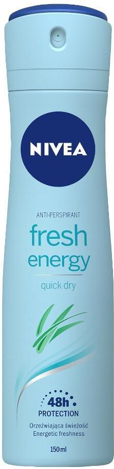 NIVEA ANTYPERSPIRANT FRESH ENERGY SPRAY 150 ml NIVEA Antyperspirant Fresh Energy w spray'u z orzeźwiającą formułą zawierającą trawę cytrynową, zapewnia energetyzującą świeżość i skuteczną ochronę przed nadmiernym poceniem się. Jest doskonałym połączeniem niezawodnej ochrony antyperspirantu i …