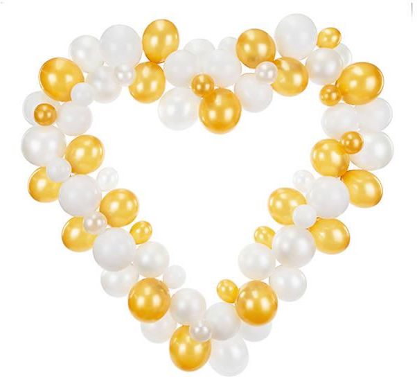 GIRLANDA BALONOWA SERCE BIAŁO - ZŁOTA 160 CM Balonowa girlanda serce na walentynki, ślub i wesele Rozmiar po złożeniu: około 160 cm. Produkt do samodzielnego złożenia. Kod produktu: GBS2. Producent: PartyDeco. Produkt wysokiej jakości ⭐⭐⭐⭐⭐ Biało - złota girlanda z balonów wspaniale ozdobi przyjęcie z okazji urodzin, walentynek i przede wszystkim wesela. Prezentowana girlanda z balonów z pewnością będzie oryginalnym ozdobnym akcentem i idealnym tłem do pamiątkowej sesji ślubnej! Girlanda z balonów w kształcie serca Oferowana przez nas balonowa girlanda w kształcie serca została wyprodukowana przy użyciu najwyższej jakości elastycznego i wytrzymałego naturalnego lateksu kauczukowego w kolorze białym pastelowym, białym metaliczny i złotym metalicznym. Balony z zestawu te spełniają europejskie normy CE – oznacza to że są przebadane laboratoryjnie, bezpieczne i biodegradowalne. Oferowana girlanda balonowa serce zawiera w zestawie 68 balonów lateksowych 16 kartonowych elementów 20 szt. naklejek dwustronnych instrukcję Balony z zestawu należy napompować powietrzem i związać na supeł. Napełnione helem nie będą latały! Po złożeniu girlanda będzie miała wymiary ok 166 cm x 160 cm. Girlanda przeznaczona jest do samodzielnego napompowania i złożenia, nie oferujemy jej jako gotowy, napompowany produkt. Do montażu przyda się pistolet na gorący klej (brak w zestawie). Uwaga: zielone ozdobne listki nie znajdują się w zestawie!