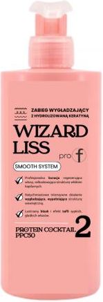 ZABIEG WYGŁADZAJĄCY Z HYDROLIZOWANĄ KERATYNĄ WIZARD LISS PRO-F Wizard Liss Pro-F to intensywna kapilarna kuracja odbudowująca włókno włosa. Dzięki zawartości kolagenu, aminokwasów i witaminy E, odzyskujesz strukturę włosów, sprężystość i głębokie wypełnienie proteinowe, zapewniasz odpowiednie dociążenie, nawodnienie a w szczególności ekstremalne wygładzenie i połysk.. SKŁADNIKI AKTYWNE Kuracja Wizard Liss zawiera kompleks składników aktywnych do pielęgnacji włosów z witaminą E, prowitaminą B, aminokwasami, keratyną, biotyną, pantenolem, olejem rycynowym, ekstraktem z żeń-szenia, proteinami soi.. Sposób użycia KROK 2: PROTEIN COCKTAIL PPC50 Innowacyjny, ekspercki System PPC - 50 - koktajl proteinowy. Koktajl N - PPC50 zapewnia intensywną pielęgnację struktury włosa dzięki zawartości keratyny, panthenolu, silikonów najnowszej generacji, aminokwasów i polyquaternium-10. Jego pH 5,2 ułatwia wchłanianie składników aktywnych. Instrukcja użycia: Nałóż na wilgotne, osuszone ręcznikiem włosy, pracując partiami od połowy długości do końcówek. Wmasuj produkt w każdą partię włosów. Pozostaw na około 10 minut. Zastosuj źródło ciepła (prostownicę na podczerwień infrared, klimazon, wapozon, ciepły ręcznik, podgrzewanie suszarką) aby aktywować produkt. Nie spłukuj i wykonaj. Kuracja nie zmienia w żaden sposób koloru wyjściowego włosów. Wizard Liss można stosować bezpośrednio po koloryzacji i rozjaśnianiu. Zaleca się powtarzanie kuracji co około 15 dni, do całkowitej regeneracji włosów.
