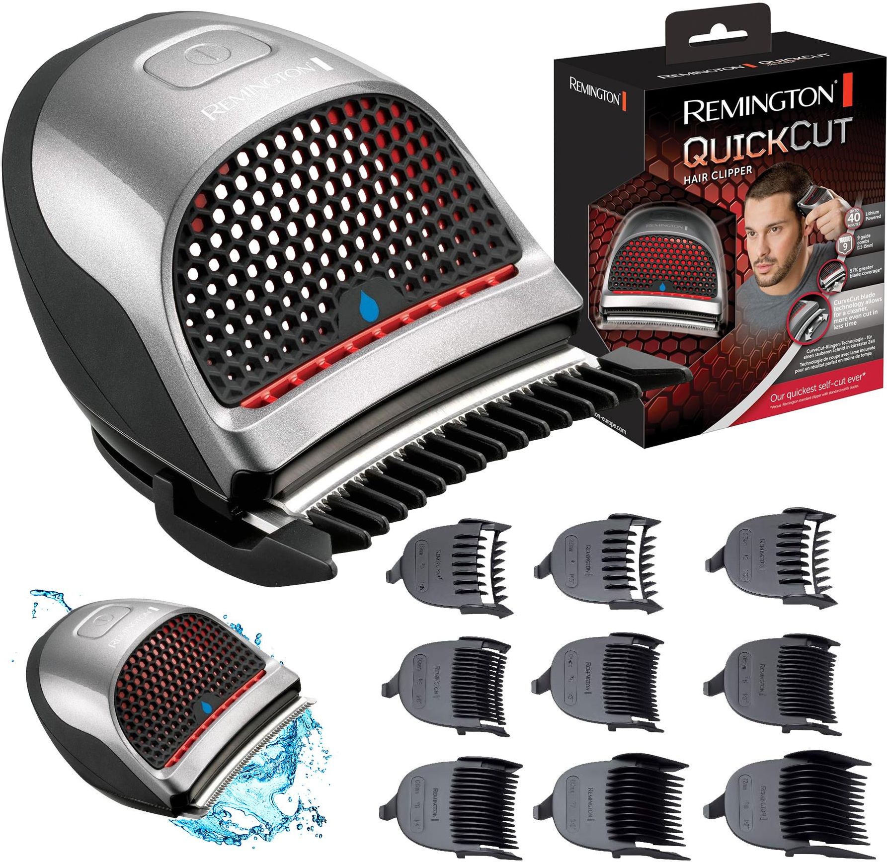 Maszynka do włosów QuickCut Producent: Remington Model: HC4250 PARAMETRY Zasilanie: sieciowo-akumulatorowe Najszybsze urządzenie do samodzielnego strzyżenia od Remington Technologia CurveCut Ergonomiczny design idealny dla Twojej dłoni Pozwala na łatwe i skuteczne strzyżenie okolic bokobrodów i szyi Ostrza ze stali nierdzewnej Czas działania: 40 minut Czas ładowania: 4 godziny Szybkie ładowanie w 10 minut Możliwość mycia pod bieżącą wodą Liczba ustawień długości: 9 Długość minimalna: 1,5 mm Długość maksymalna: 15 mm Liczba nasadek: 9 Tryb Turbo Profesjonalne strzyżenie! Maszynka do strzyżenia HC4250 oferuje Ci maksymalny komfort! Idealna do golenia, cieniowania i strzyżenia, ta uniwersalna maszynka to jedyne czego potrzebujesz do osiągnięcia wymarzonego rezultatu. Szybko i łatwo Stwórz swoją ulubioną fryzurę bez obaw z maszynką Quick Cut Pro. Dzięki 33% szybszemu strzyżeniu, 57% szerszym ostrzom i 12 grzebieniom sprawia, że strzyżenie własnych włosów jest szybkie i łatwe. Wygodny Tryb Turbo zwiększa moc maszynki, by przycinać gęstsze włosy. 9 grzebieni o różnej długości Niezależnie od tego, czy nosisz krótkie, czy długie włosy, maszynka posiada 9 grzebieni dla różnych długości włosów (1,5-15 mm), więc na pewno znajdziesz dla siebie idealne rozwiązanie. Precyzyjne cięcie Zaawansowana technologia CurveCut od Remington zapewni Ci czystsze i dokładniejsze strzyżenie w krótszym czasie, dopasowując się do kształtu Twojej twarzy i pozostawiając Cię z efektem godnym profesjonalisty. Do 40 minut bezprzewodowej pracy QuickCut HC4250 jest gotowy do użycia po 4 godzinach ładowania. Po całkowitym naładowaniu baterii uzyskasz do 40 minut bezprzewodowej pracy, co zapewni Ci mnóstwo czasu na dopracowanie swojego wyglądu. Specyfikacja techniczna Producent Remington Kolor Czarno-srebrny Przeznaczenie Do ciała, Do twarzy, Do włosów Liczba ustawień długości strzyżenia 9 Czas pracy bezprzewodowej 40 minut Zasilanie Akumulatorowo-sieciowe Minimalna długość 1.5 mm Maksymalna długość 15 mm Funkcje dodatkowe Wskaźnik ładowania Czas ładowania akumulatora 240 min Możliwość mycia pod bieżącą wodą Tak Ostrza Stal nierdzewna