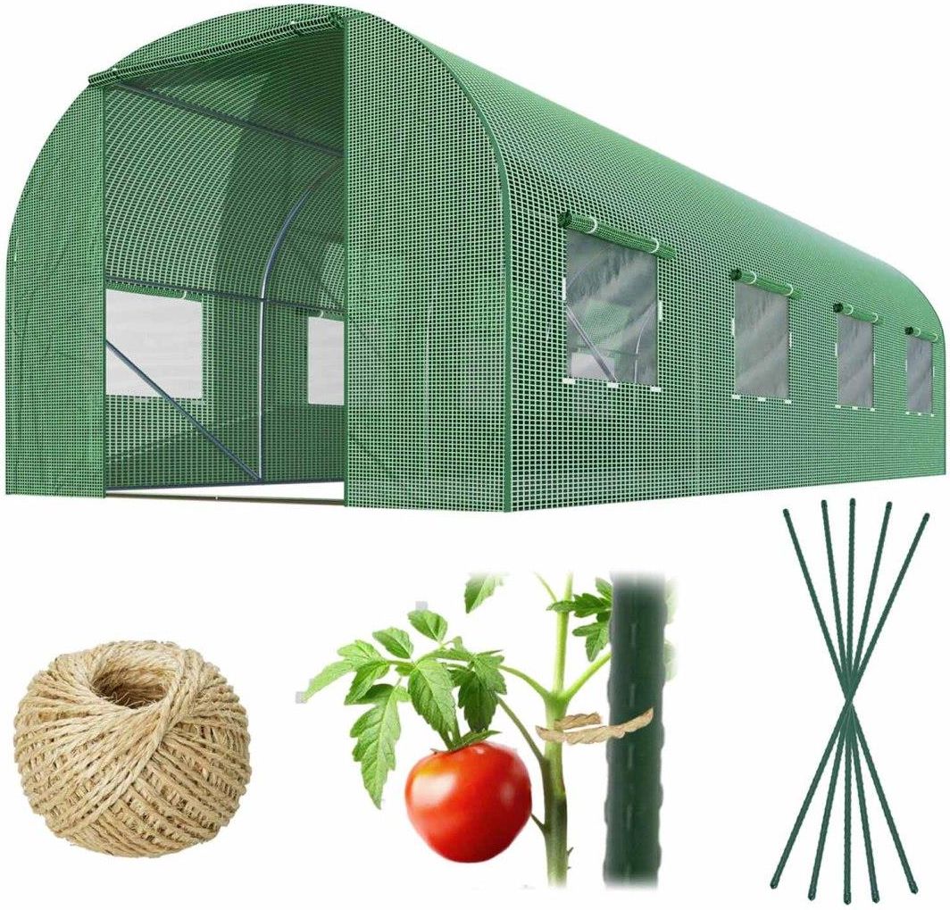 TUNEL FOLIOWY OGRODOWY 10 m2 wymiary: 250 cm x 400 cm x 200 cm, wymiary wejścia 80 cm x 180 cm, gramatura poszycia: 140 g/m2 - zapewnia trwałość przez wiele sezonów, otwieranie za pomocą wszytego zamka błyskawicznego, profile stalowe, dwustronnie ocynkowane 25 x 0,7 mm, 8 okien z moskitierami, sznurek 100 m do podwiązywania roślin GRATIS! tyczki o długości 120 cm do wspierania/pionowania roślin GRATIS! Zastosowanie najnowocześniejszych technologii sprawi, że tunel będzie służył przez wiele sezonów. Zdrowa żywność w zasięgu ręki Tunel ogrodowy Plonos to idealne rozwiązanie do Twojego przydomowego ogródka. Posiada wiele zalet, które czynią go idealnym do prowadzenia upraw roślin, gdyż: pełni funkcję ochronną dla roślin, jest łatwy w montażu, pozwala na utrzymanie optymalnych warunków dla roślin, szczególnie w okresach niskich temperatur czy zachmurzeń, np. wczesnych odmian warzyw. Grubsze niż standardowo profile — szereg korzyści! Dzięki profilom o średnicy aż 25 mm namiot jest wyjątkowo stabilny i trwały. Większość dostępnych na rynku namiotów zbudowana jest z dużo cieńszych profili (19 mm). Namiot z profilami grubości 25 mm jest dużo bardziej wytrzymały. Dodatkowo dzięki tak wzmocnionej konstrukcji nie musisz montować odciągów! stelaż został wykonany z zaawansowanych technologicznie obustronnie ocynkowanych, stalowych profili 25 mm, podwójne profile w górnej części tunelu zapewniają dodatkową stabilizację tunelu. Okna na rzepy, z moskitierą tunel posiada 8 okien, po 4 na każdej ze ścian bocznych, przez okna docierają do środka większe ilości promieni słonecznych, okna umożliwiają kontrolę swoich plonów bez konieczności otwierania i wchodzenia do środka tunelu ogrodowego, okna zostały zabezpieczone siatką moskitierą. Foliowe poszycie foliowe poszycie zostało wykonane z materiału PE o gramaturze aż 140 g/m2 - dzięki temu nasze rośliny są dobrze chronione przed wiatrem i innymi czynnikami zewnętrznymi, niski współczynnik odbicia światła zapewnia wysoką przepuszczalność promieniowania słonecznego!, dzięki właściwości materiału, z którego zostało wykonane poszycie, możemy je odpowiednio napiąć i dopasować, dodatkowo tunel został zakończony "fartuchem" w części dolnej, który po przysypaniu go ziemią chroni folię przed podwiewaniem, folie otwiera się za pomocą zamka błyskawicznego. Zestaw kijków do pionowania/wspieranie roślin i sznurek sizalowy 100 m GRATIS! Idealny do podwiązywania roślin w tunelach foliowych, takich jak pomidory. Wytrzymałe stalowe tyczki o długości 120 cm, pokryte powłoką z tworzywa sztucznego, zakończone ostrym szpikulcem, który ułatwia ich wbicie w ziemię. DANE TECHNICZNE szerokość: 250 cm długość: 400 cm wysokość: 200 cm powierzchnia: 10 m2 szerokość drzwi: 80 cm wysokość drzwi: 180 cm ilość okien: 8 szt. ilość tyczek: 5 szt. profile stalowe, dwustronnie ocynkowane 25 x 0,7 mm folia PE 140 g/m2 UV4 proof, zielona wejście na zamek błyskawiczny