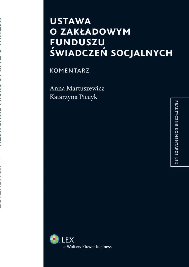 Publikacja stanowi kompleksowe i wielopłaszczyznowe omówienie problematyki związanej z działalnością socjalna pracodawców, czyli zasad tworzenia, prowadzenia i wydatkowania środków pochodzących z zakładowego funduszu świadczeń socjalnych. Autorki w praktyczny sposób omawiają stosowanie przepisów ustawy o zakładowym funduszu świadczeń socjalnych, wzbogacając opracowanie o liczne przykłady, wzory dokumentów związanych z prowadzeniem działalności socjalnej oraz orzecznictwo sadów. W publikacji uwzględniono wszystkie zmiany ustawy, w tym nowelizacje dotyczącą finansowania z zakładowych środków socjalnych działalności związanej z opieka nad dziećmi w żłobkach, przedszkolach, klubach dziecięcych oraz innych formach wychowania przedszkolnego. Komentarz skierowany jest zarówno do pracodawców i pracowników działów kadr i plac, którym umożliwi prawidłowe i sprawne tworzenie funduszu świadczeń socjalnych, naliczanie odpisów na fundusz oraz rezygnacje z realizacji obowiązków socjalnych, jak i do pracowników oraz związków zawodowych, którym pozwoli zapoznać się z ich prawami i obowiązkami dotyczącymi tej problematyki. Wykaz skrótów 7 Ustawa z dnia 4 marca 1994 r. o zakładowym funduszu świadczeń socjalnych 9 Rozdział 1Przepisy ogólne 11 Art. 1 11 Art. 2 19 Rozdział 2Tworzenie funduszu 32 Art. 3 32 Art. 4 48 Art. 5 55 Art. 6 73 Art. 6a 77 Art. 7 78 Art. 8 88 Art. 9 105 Art. 10 108 Art. 11 108 Art. 12 109 Art. 12a 112 Rozdział 3Zmiany w przepisach obowiązujących oraz przepisy przejściowe i końcowe 118 Art. 13-19 (pominięte). 118 Art. 20 118 Art. 21 118 Art. 21a 118 Art. 22 120 Art. 23 120 Załączniki 121 Przykładowy regulamin zakładowego funduszu świadczeń socjalnych 123 Wzory pism i przykłady do ustawy o zakładowym funduszu świadczeń socjalnych 135 Akty prawne 145 Ustawa z dnia 4 marca 1994 r. o zakładowym funduszu świadczeń socjalnych 145 Ustawa z dnia 4 lutego 2011 r. o opiece nad dziećmi w wieku do lat 3 159 Rozporządzenie Ministra Pracy i Polityki Społecznej z dnia 9 marca 2009 r. w sprawie sposobu ustalania przeciętnej liczby zatrudnionych w celu naliczania odpisu na zakładowy fundusz świadczeń socjalnych 191 Ustawa z dnia 19 grudnia 2008 r. o emeryturach pomostowych (wyciąg) 193Literatura 199