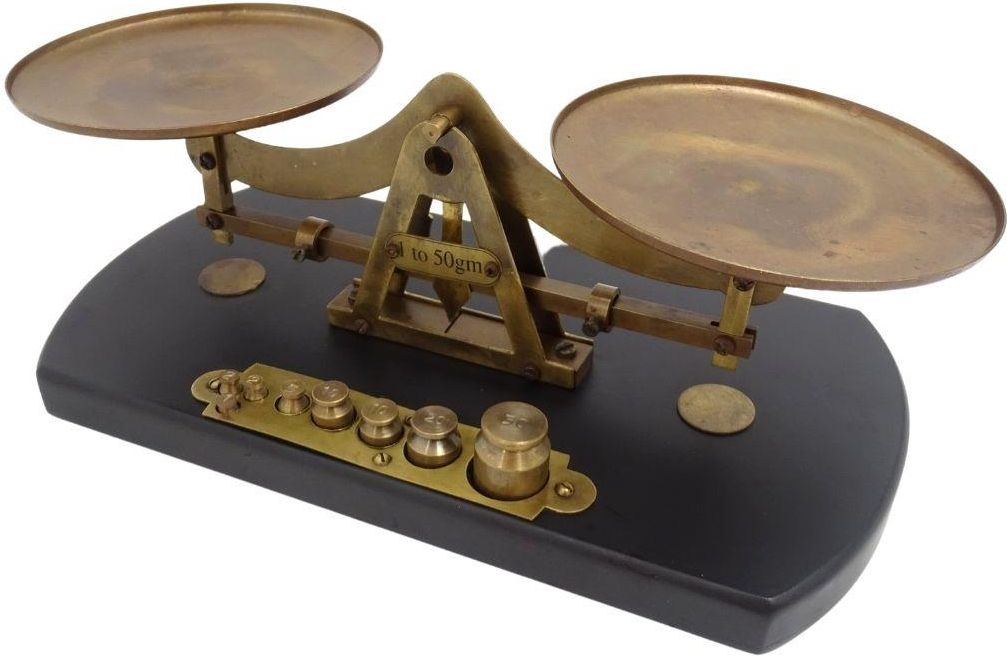 Waga Kuchenna Retro – WSB7 Waga Kuchenna retro to świetny dodatek do kuchni rustykalnej, góralskiej, czy eklektycznej. Uniwersalne połączenie mosiądzu i drewna i stylizowany design sprawiają, że waga wygląda jakby była muśnięta duchem czasu. Waga przypadnie do gustu dzieciom, które będą mogły bawić się nią w sklep. W zestawie 8 odważników do wagi szalkowej. Waga wykonana z mosiądzu usytuowana na podstawie drewnianej. Na podstawie miejsce na odważniki. Waga nie posiada certyfikatów zezwalających na profesjonalne użycie. Jest to przedmiot dekoracyjny. Specyfikacja wagi szalkowej: Wymiary: Materiał wykonania: mosiądz Postawa: drewniana Dł. 25,5cm, wys. 10cm W zestawie 8 odważników: 1 g 2 g x 2 5 g 10 g x 2 20 g 50 g Waga Kuchenna Retro sprawdzi się jako: Ozdoba apteki Dekoracja kuchni rustykalnej Upominek dla farmaceutki Zabawkowa waga dla dzieci do zabawy w sklep
