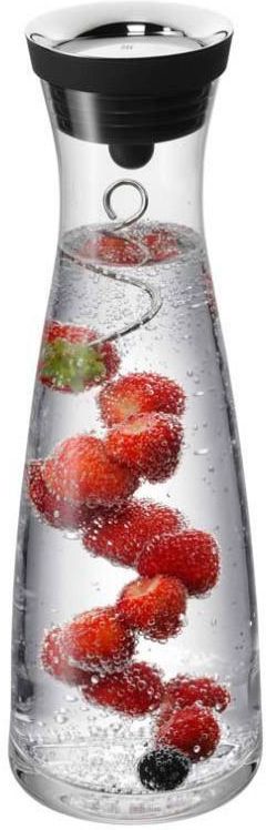 WMF Basic – zestaw 3-częściowy: karafka do wody 1 L z 2 spiralami do nabijania owoców, korek srebrny Elegancka i funkcjonalna karafka do wody z linii Basic marki WMF o pojemności 1 litra, wyposażona w dwie spiralne wykałaczki do efektownego nabijania i prezentacji ulubionych owoców. Dzięki temu zestawowi przygotujesz nie tylko orzeźwiające napoje, ale także zachwycisz gości wyjątkową, kolorową aranżacją. Karafka posiada innowacyjne zamknięcie, które otwiera się niezależnie od kierunku przechylenia, co ułatwia nalewanie i zabezpiecza przed rozlaniem. Szeroki otwór ułatwia napełnianie karafki oraz dodawanie kostek lodu, plasterków cytrusów czy świeżych ziół. Stabilna i szeroka podstawa zapewnia bezpieczeństwo i komfort użytkowania. Do zestawu dołączone są dwie spirale wykonane ze stali nierdzewnej, które umożliwiają efektowne nabijanie owoców – zarówno całych, jak i pokrojonych. To doskonałe rozwiązanie, aby wzbogacić wygląd i smak wody, lemoniady czy innych napojów. Korek w kolorze srebrnym wykonany jest z wysokiej jakości stali Cromargan® 18/10 oraz silikonu, co gwarantuje trwałość, szczelność i łatwość utrzymania w czystości. Najważniejsze cechy: Pojemność karafki: 1 litr W zestawie dwie spirale ze stali nierdzewnej do nabijania owoców Innowacyjne zamknięcie karafki otwierające się niezależnie od kierunku przechylenia Szeroki otwór ułatwiający napełnianie oraz dodawanie lodu i dodatków smakowych Stabilna, szeroka podstawa dla bezpieczeństwa podczas użytkowania Korek w kolorze srebrnym z wysokiej jakości stali Cromargan® 18/10 i silikonu – szczelny i trwały Karafka wykonana ze szkła wysokiej jakości, odpornego na uszkodzenia Możliwość łatwego czyszczenia i utrzymania higieny Doskonała do podawania wody, lemoniady, wody smakowej oraz innych napojów Zestaw WMF Basic z karafką i spiralami do owoców to idealne połączenie funkcjonalności i stylu, które pozwoli Ci przygotować wyjątkowe, orzeźwiające napoje oraz zachwycić gości efektowną prezentacją na stole. WMF jest marką LUKSUSOWĄ. Firma od 1853 roku specjalizuje się w produkcji wysokiej jakości sztućców, galanterii stołowej, artykułów kuchennych dla gospodarstwa domowego jak i profesjonalnej gastronomii. Marka WMF jest jednym ze światowych liderów produkujących wyposażenie dla Hoteli, restauracji i kawiarni.