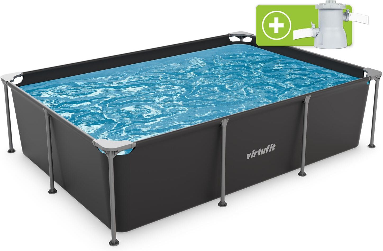 Basen - Prostokątny - 260 x 180 cm - Zawiera pompę filtrującą Marka:Virtufit Opis produktu Przestronny, trwały i stylowy basen. Wykonane z mocnych i trwałych materiałów, które posłużą latami. Cechy kluczowe Pływanie Baseny ogrodowe Baseny dmuchane Specyfikacja Przeznaczenie:Pływanie Rozmiar: