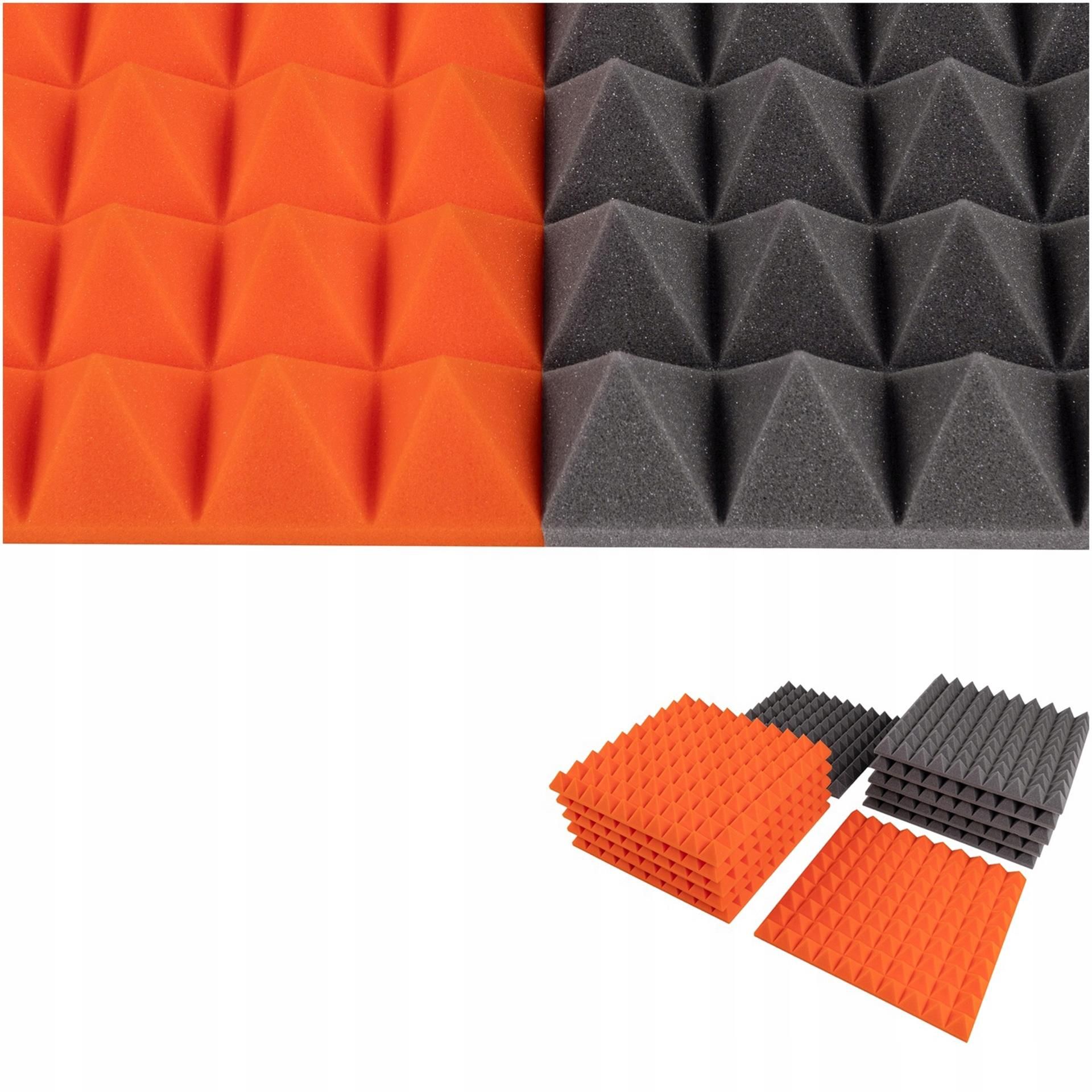 PIANKA wygłuszająca piramidka akustyczna ZESTAW panele na ścianę do kuchni 50x50cmx5cm - 12 sztuk = 3 m2 Trudnopalna i samo gasnąca wg normy FMVSS 302 6 sztuk paneli koloru szarego 6 sztuk paneli koloru pomarańczowego Chcesz poprawić akustykę w domu? Denerwuje Cię echo? Rozwiązaniem są panele z …