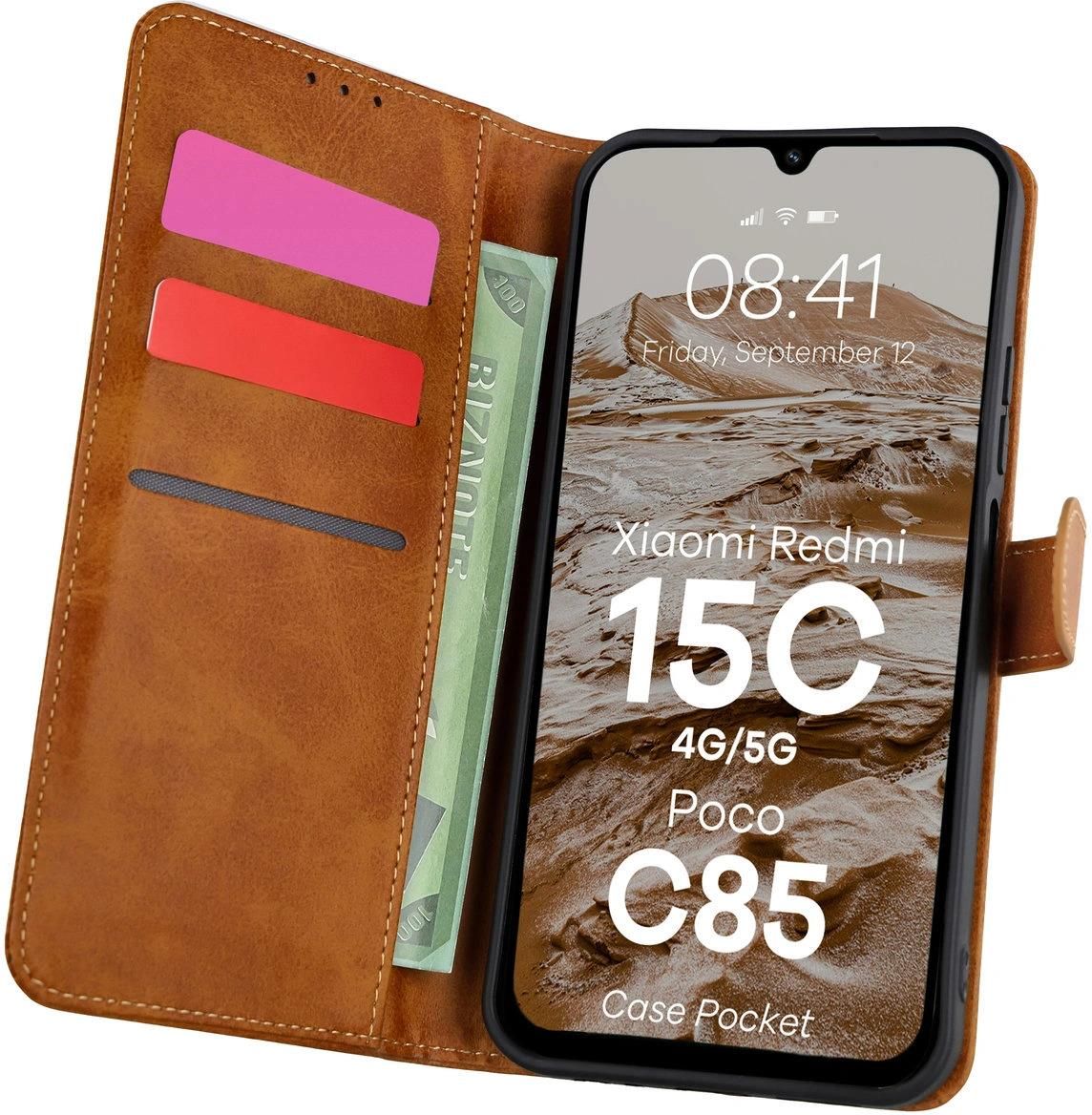 Bizon Etui Z Klapką Case Pocket Do Xiaomi Redmi 15C 4G/5G / Poco C85 Brązowe Serock