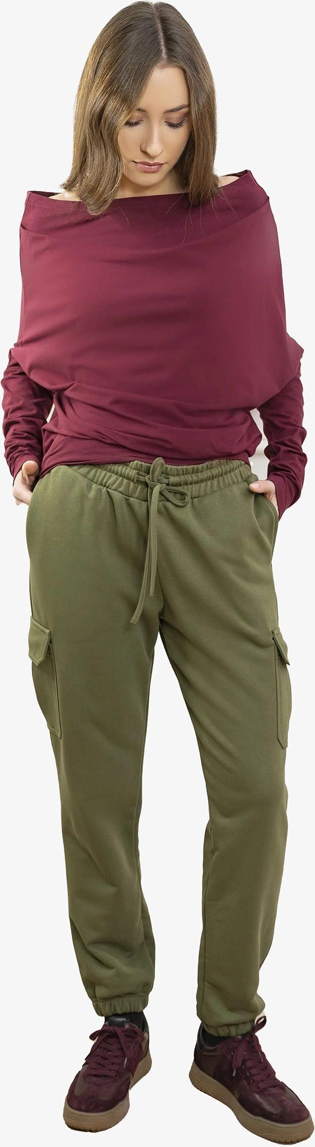 KOLOR: ZIELONY KHAKI Bawełna 90%, poliester 10%. Dzianina dresowa. GRAMATURA: 330 G/M2 Spodnie o swobodnym kroju z nogawkami zakończonymi elastycznymi ściągaczami. Wykonane z miękkiej, wysokiej jakości dzianiny, łączą miejski styl z maksymalną wygodą. Charakterystyczne kieszenie boczne nadają im nowoczesnego, lekko sportowego charakteru. Zaprojektowane i uszyte w Polsce. • nogawki zakończone ściągaczem, • luźny, komfortowy krój, • elastyczny pas z dodatkowym wiązaniem. Wymiary