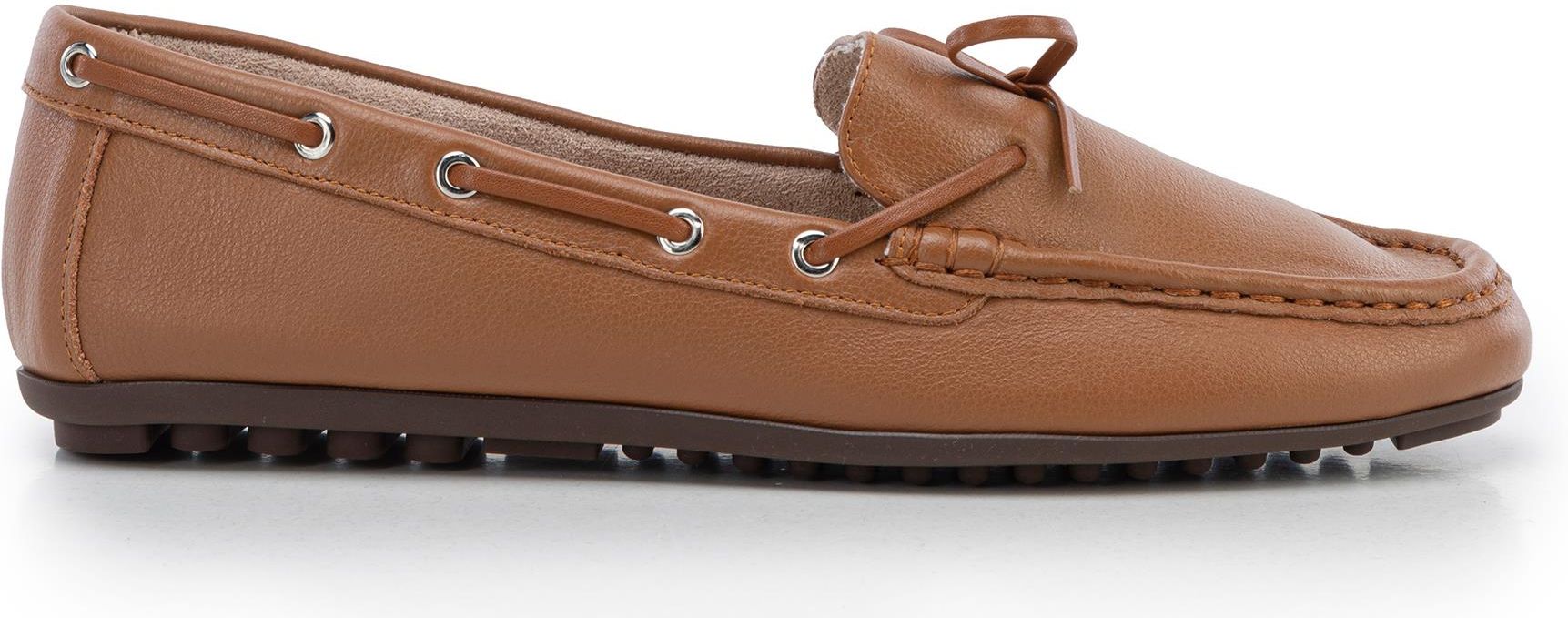 Damskie mokasyny ze skóry z rzemykiem brązowe Serock