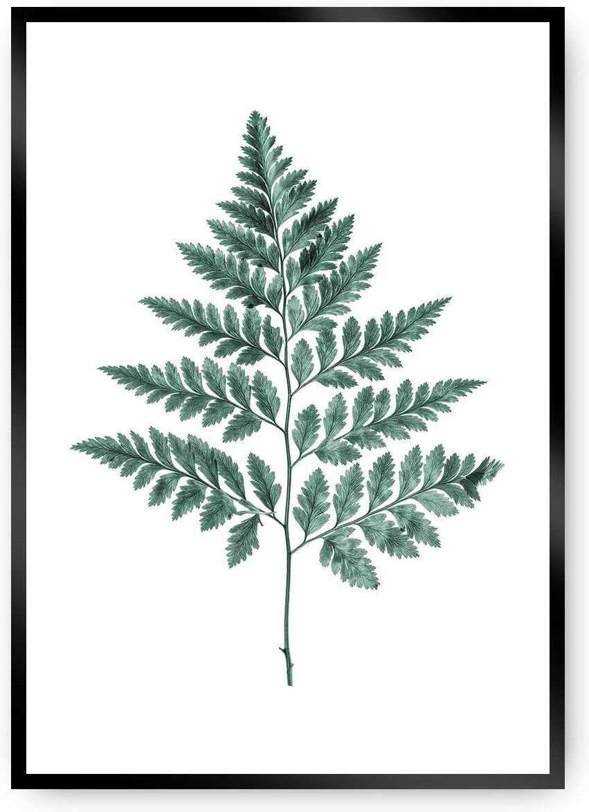 Plakat z motywem liścia paproci w kolorze szmaragdowej zieleni. Plakaty o roślinnych motywach dodadzą charakteru i uroku wnętrzom w Twoim domu. Oryginalna dekoracja ściany w salonie, sypialni czy gabinecie. Doskonały pomysł na prezent. Grafika wydrukowana została na papierze satynowym bez połysku o gramaturze 200g. Plakat można kupić bez ramki, jednak dla uzyskania lepszego efektu dobierz pasującą ramkę. Pozwoli Ci to na stworzenie kompletnej galerii na ścianie. W naszej ofercie posiadamy ramki w kolorze: białym, czarnym, srebrnym i złotym. Ramki dostępne są w pięciu rozmiarach. Rozmiary 21x30cm, 30x40cm, 40x50cm wykonane są z tworzywa sztucznego. Rozmiary 50x70cm i 70x100cm wykonane są z aluminium.Pozwól by botaniczne ogrody rozkwitły teraz w Twoim wnętrzu!