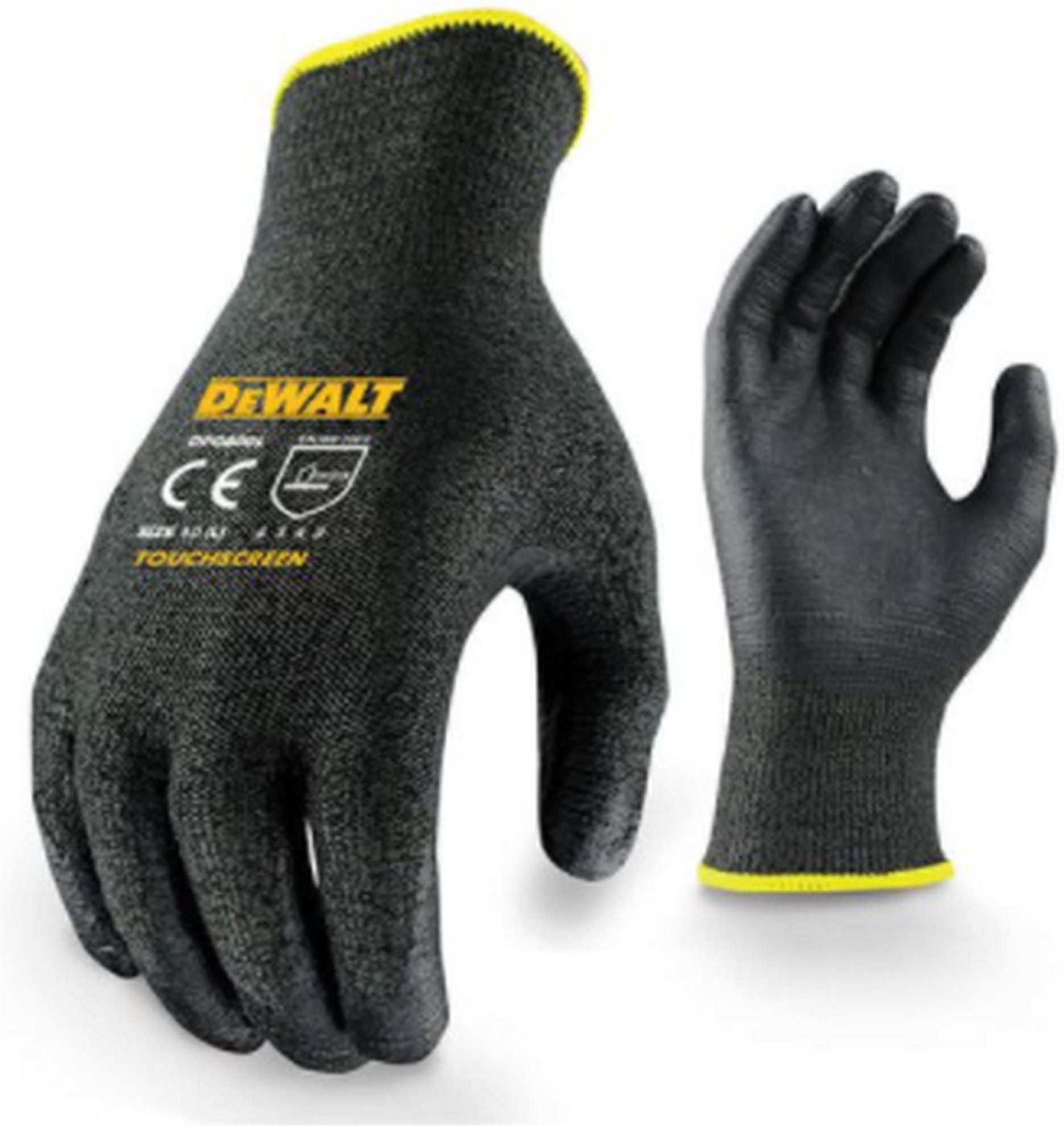 Rękawice DeWALT DPG800L HPPE Cut Glove umożliwiają pracę z ekranami dotykowymi • Przeznaczony do pracy z maszynami, z narzędziami ręcznymi i elektrycznymi. • Specjalna powłoka zapobiegająca uszkodzeniom do pracy w trudnych warunkach. • Bardzo cienka, ale mocna tkanina. • Rozmiar: L odpowiada rozmiarowi nr 10 • Materiał: 63% HPPE, 23% poliester, 12% spandex • Odporność: ścieranie 4, przebicie 2, przebicie 3 (dotyczy nowych, niemytych rękawic) EN388: 2003 (4122) ZDJĘCIE POGLĄDOWE