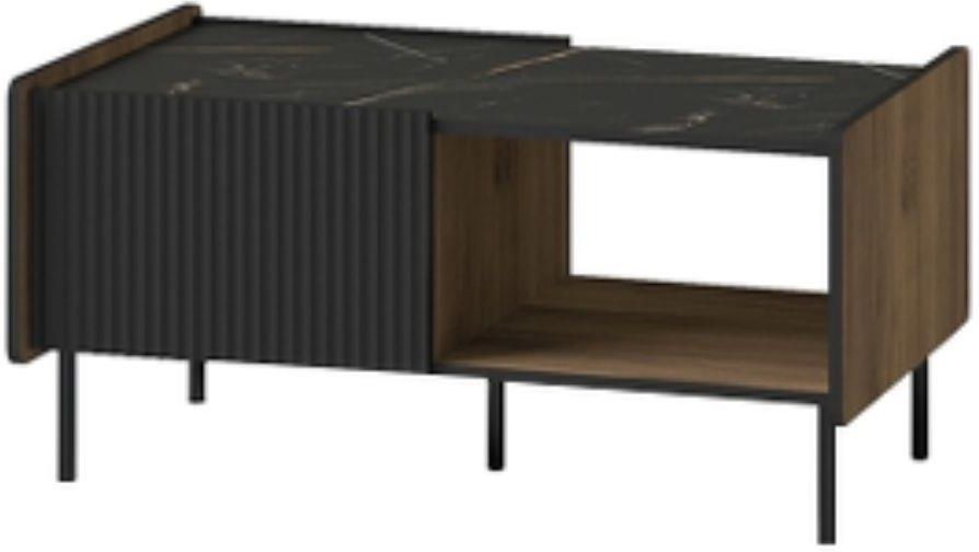 Nowoczesny stolik kawowy Prestigo P11, który podkreśli elegancję każdego wnętrza.Oryginalny blat z efektem marmuru w połączeniu z czarnym, ryflowanym wykończeniem dodaje luksusowego charakteru.Ukryta szafka pod blatem zapewnia dyskretne miejsce do przechowywania drobiazgów.Solidna konstrukcja gwarantuje stabilność i trwałość na lata.Szeroki wybór elementów kolekcji Prestigo pozwala na indywidualną aranżację wnętrza. Wymiary: szer. 98,6 cm x gł. 58 cm x wys. 47,1 cmModel objęty jest 2-letnią gwarancją producenta.Produkt dostarczymy do Państwa BEZPŁATNIE pod wskazany adres na terenie całego kraju.Mebel wymaga krótkiego montażu, zgodnie z załączoną instrukcją.Co WAŻNE: zgodnie z prawem i naszymregulaminemmają Państwo pełne prawo do zwrotu nieużywanych towarów, jeśli nie spełnią one Państwa oczekiwań.