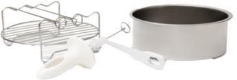 Zestaw akcesoriów do frytownic Electrolux EAFEK1 Ten poręczny zestaw do frytkownicy zawiera naczynie do pieczenia, ruszt do gotowania, szpikulce i spiralizator. Wykorzystaj w pełni swoją frytownicę za pomocą tego praktycznego zestawu akcesoriów! ODPORNE NA CIEPŁO Akcesoria wykonane są z materiałów wytrzymujących temperaturę do 300°C. Nie zawierają BPA, więc korzystanie z nich jest całkowicie bezpieczne. PROSTE W KONSERWACJI Naczynie do pieczenia, ruszt i szpikulce wykonane są z najwyższej jakości stali nierdzewnej, którą łatwo utrzymać w czystości. Dla jeszcze większej wygody naczynie do pieczenia posiada również powłokę nieprzywierającą. KOMPLATYBILNOŚĆ Zestaw pasuje do większości frytownic o pojemności 3 l i większej. W ZESTAWIE 1 x naczynie do pieczenia (średnica 16,5 cm) 1 x ruszt do gotowania (o średnicy 16,5 cm) z 3 szpikulcami 1 x spiralizator do krojenia warzyw