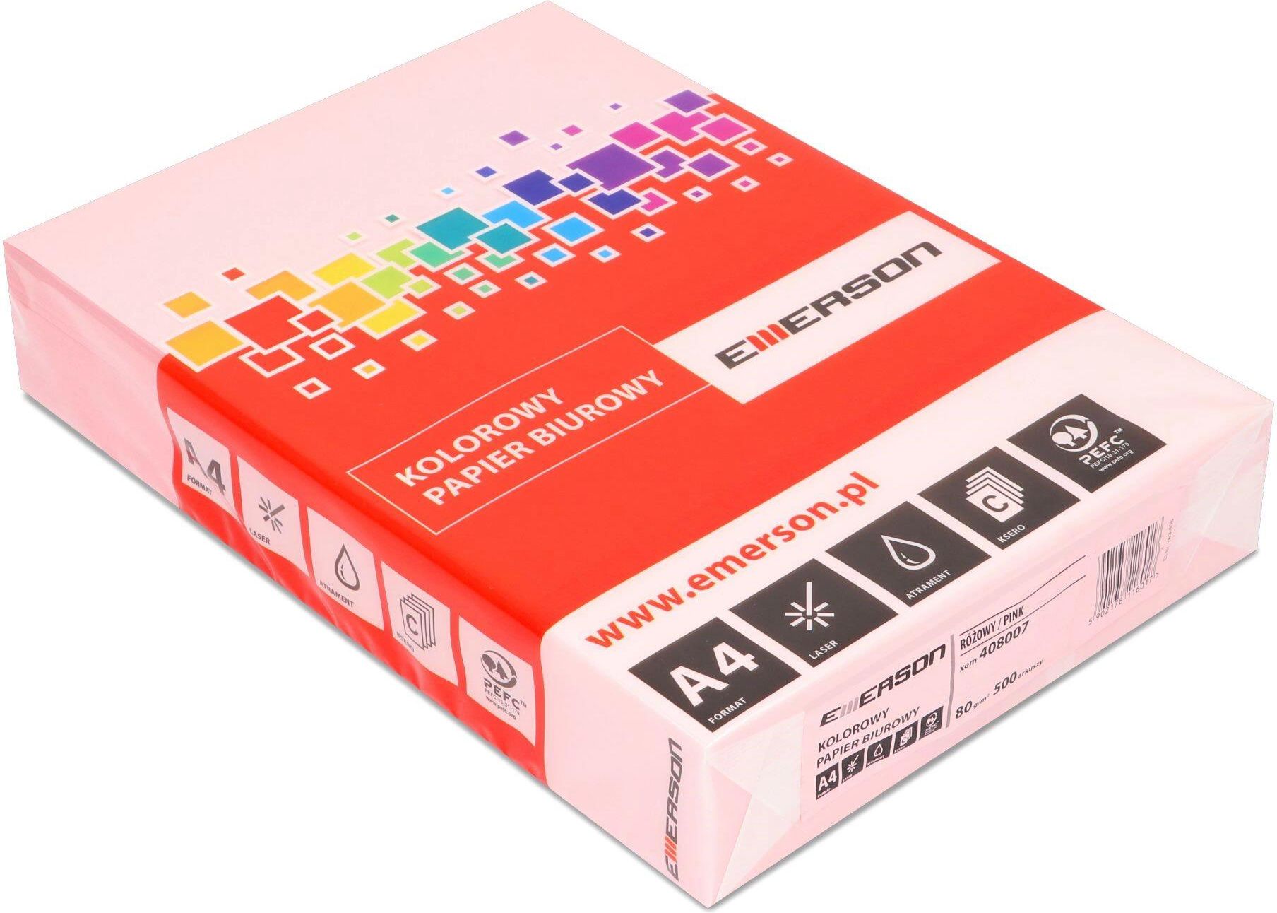 Emerson Kolorowy Papier Ksero A4 Różowy / Pastel, A4, 80 G/M2, 500 Ark. Serock