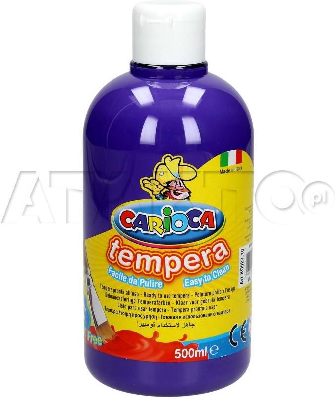 CARIOCA to uznana włoska marka, oferująca wysokiej jakości artykuły szkolne oraz przedszkolne - dzięki niej można zaopatrzyć swoje dziecko w atestowane produkty, które są potrzebne do codziennej zabawy i nauki Farba tempera Carioca 500ml fioletowa * tempery to farby wodorozcieńczalne, którymi można malować na wszystkich porowatych powierzchniach: płótnie, papierze, kartonie, tekturze, drewnie, tynku, polistyrenie * wysokiej jakości pigmenty użyte w farbach zapewniają intensywne, wyraziste kolory * po wyschnięciu farby stają się delikatnie matowe a na końcu stają się aksamitne * idealne do nauki i do prac grupowych * łatwo zmywalne * bezzapachowe * szybkoschnące * można je dowolnie mieszać, co pozwala uzyskać nowe kolory i odcienie * możliwość warstwowego malowania i korekt * gotowe do użycia bez dodawania wody * produkowane zgodnie z wymaganiami UNII EUROPEJSKIEJ * przechowywać w temperaturze od 10 do 40°C * butelki wykonane w 30% z materiału pochodzącego z recyklingu * pojemność: 500 ml * jednostka sprzedaży 1 sztuka
