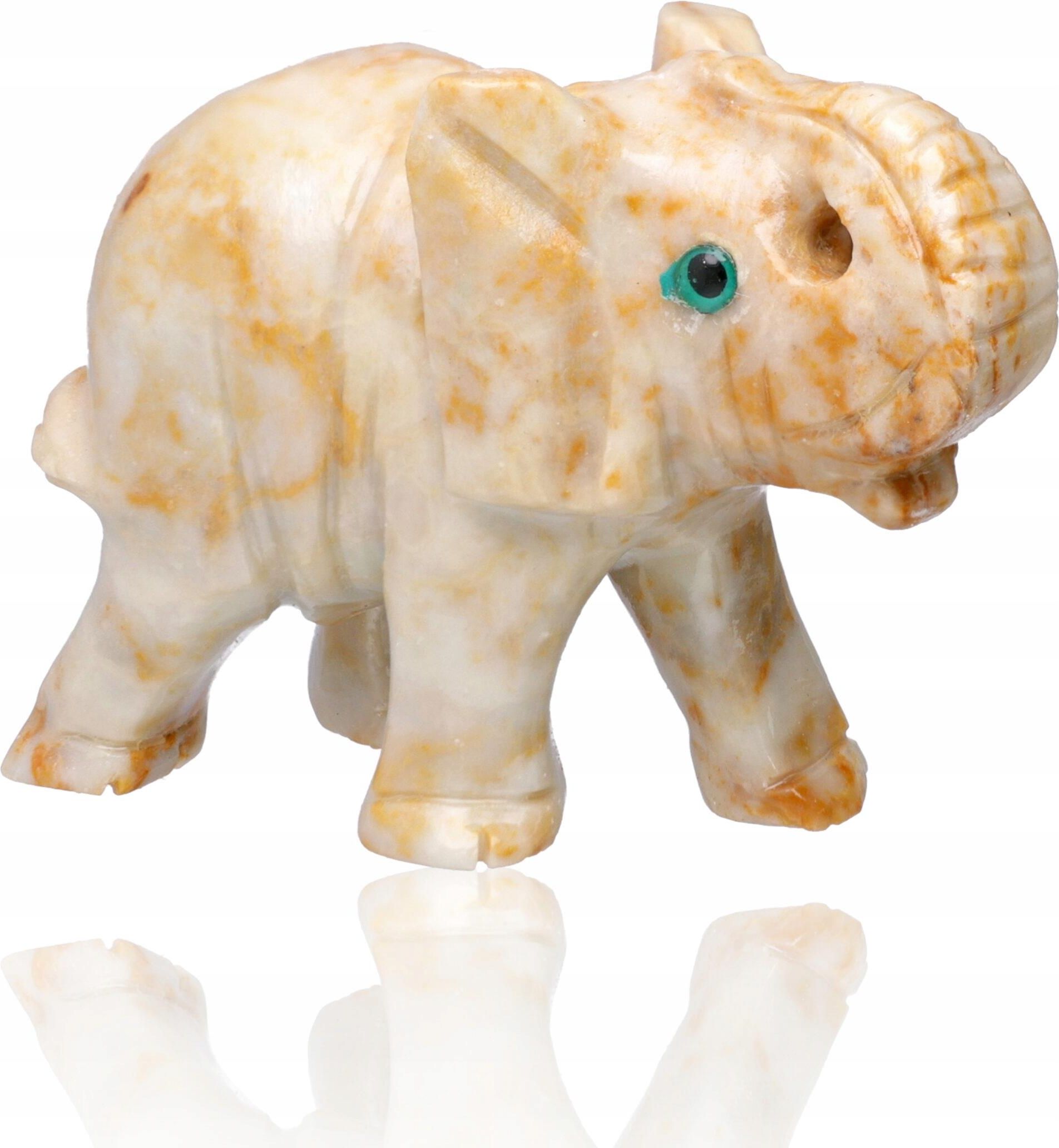 Słonik na Szczęście Słoń Kamień Naturalny Rzeźbiony 5x4 cm Słoń z Kamienia Naturalnego Specyfikacja Zwierzę: słoń Kamień: steatyt (inaczej: talk, kamień mydlany) Kolor: wielokolorowy, naturalny kolor kamienia, może wahać się od jasnych beży, przez zielenie, czerwienie aż po ciemne szarości. Rozmiar: około 5x4x2 cm Symbolika: szczęście, siła, mądrość Cena dotyczy: 1 sztuki wysyłanej losowo. Figurka posiada otwór przy trąbie Każda figurka jest inna: ze względu na ręczne rzeźbienie i różnorodny kolor kamienia. Zdjęcia przedstawiają przykładowe figurki. Słonik Figurka Symbolika Słoń symbolizuje szczęście, siłę i mądrość: To zwierzę kojarzy się z potęgą, stabilnością oraz długim, dostatnim życiem. Słoń jest symbolem siły, mądrości i długowieczności. Uważany za zwierzę o wielkim sercu i łagodnym duchu, reprezentuje także lojalność, rodzinne więzi oraz powodzenie w życiu. W kulturach wschodnich słoń przynosi szczęście i usuwa przeszkody na drodze do sukcesu. Figurka słonia to nie tylko majestatyczna ozdoba, ale też potężny symbol ochrony, dobrobytu i wewnętrznego spokoju. Figurka z Kamienia Zastosowanie figurki: Idealna jako dekoracja – subtelnie urozmaica przestrzeń domu, biura lub miejsca pracy, wprowadzając naturalny akcent i pozytywną energię. Oryginalny prezent – świetny upominek dla bliskich, miłośników symboliki, natury lub kolekcjonerów kamiennych figurek. Element wspierający atmosferę – może służyć jako talizman, figurka inspirująca do refleksji, praktyk mindfulness lub harmonizacji otoczenia.