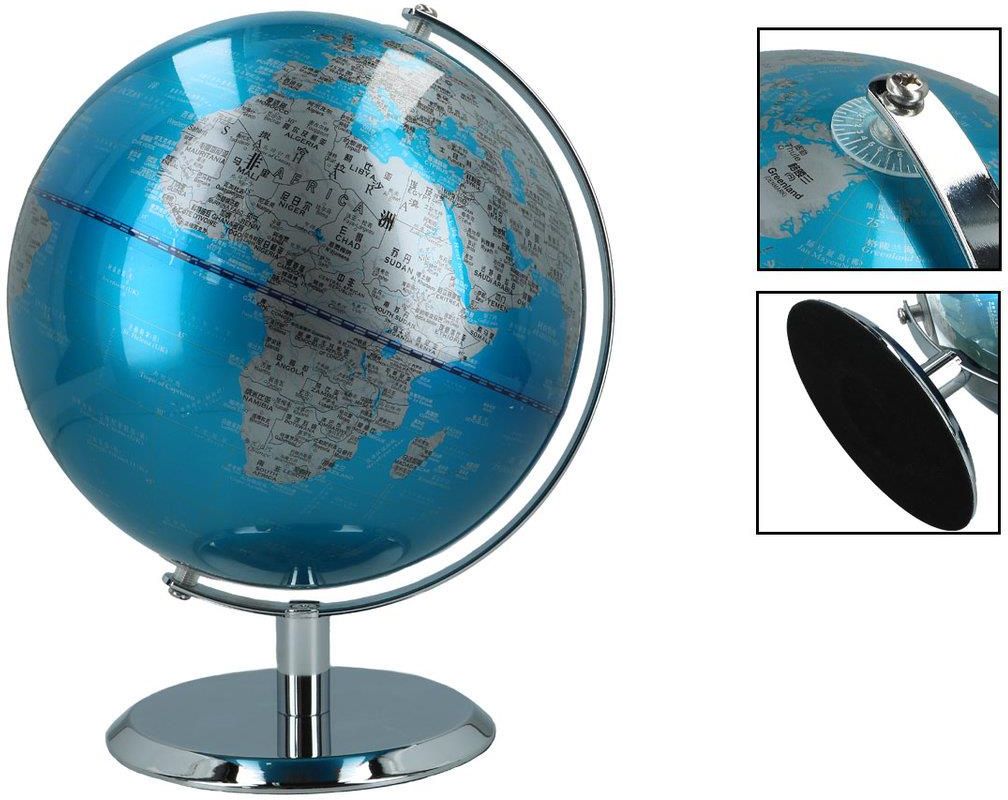 Utrzymany w kolorystyce niebiesko - srebrnej, bardzo elegancki globus będzie świetną dekoracją salonu. A może będzie netchnieniem do podróży?