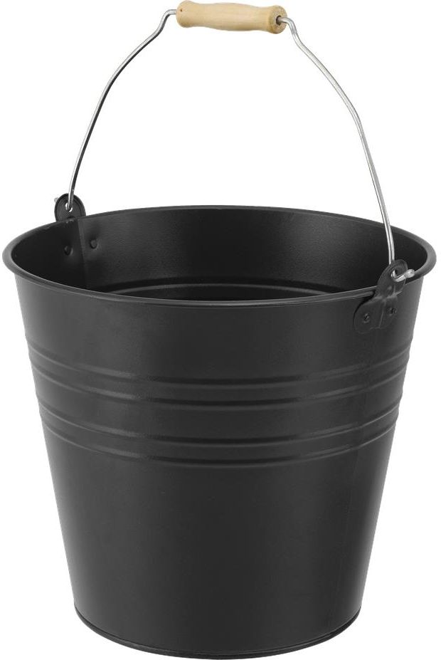 Czarne wiadro cynkowe z praktycznym drewnianym uchwytem. Może być używane jako dekoracja lub doniczka. Mieści 13 litrów.