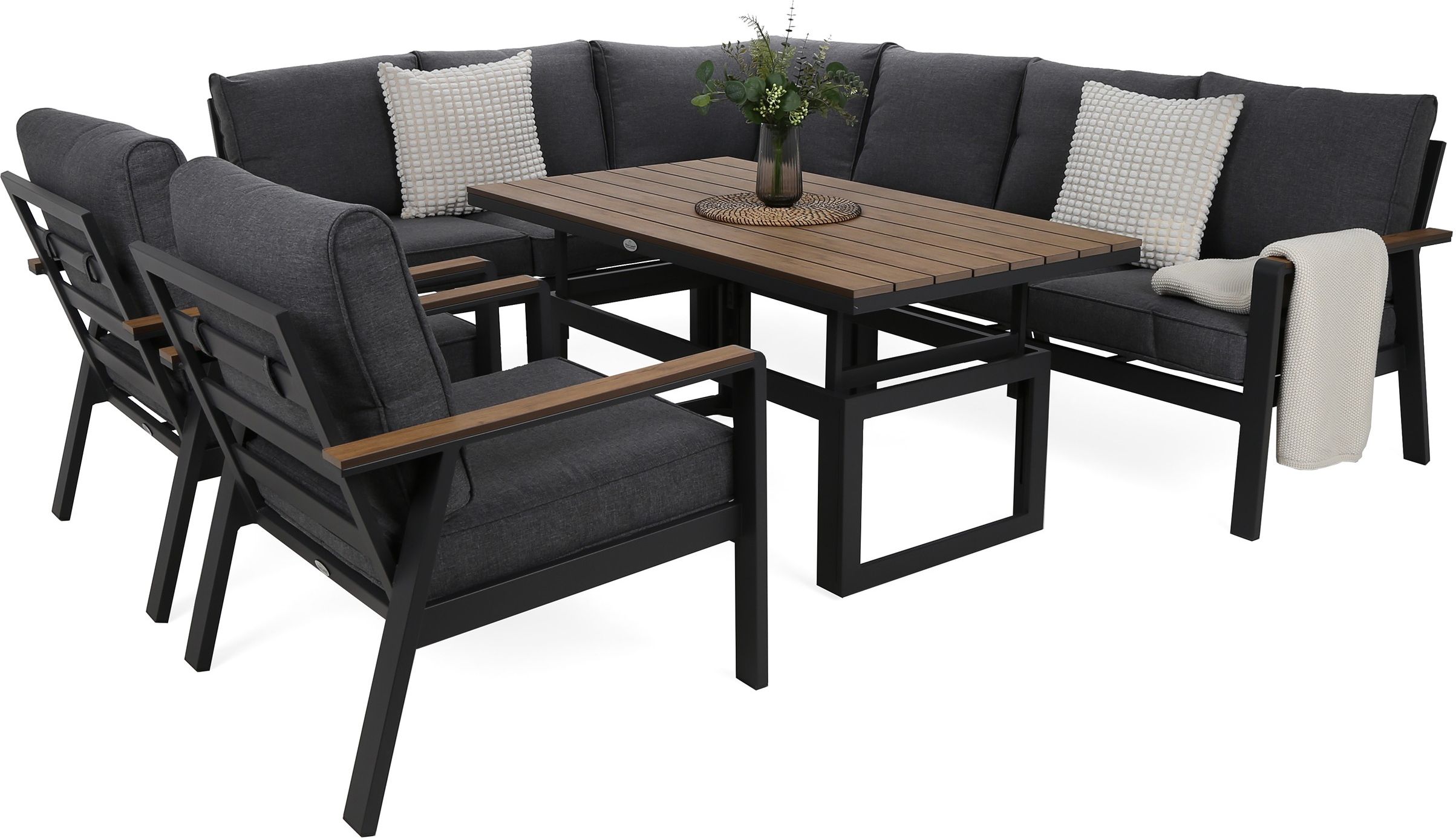 Home & Garden Narożne Meble Aluminiowe Turyn Dark Grey / Grey Melange Zestaw mebli ogrodowych od Home & Garden to nowoczesne rozwiązanie dla osób ceniących sobie funkcjonalność, estetykę i trwałość na zewnątrz. Komplet ten pozwala na stworzenie komfortowej przestrzeni do relaksu, spotkań z bliskimi …