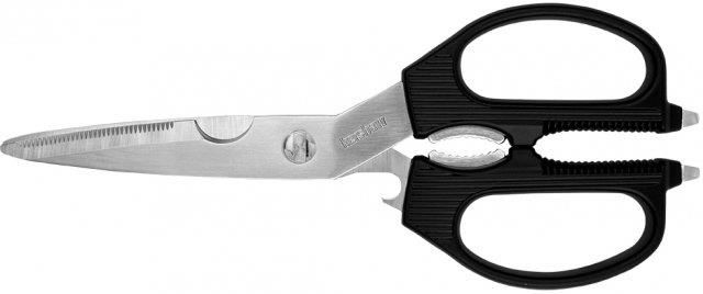 Nożyczki Kershaw Taskmaster 1121 Kod: 522-003 Kershaw Taskmaster 1121 to wielofunkcyjne nożyce outdoorowe, które dzięki przemyślanej konstrukcji sprawdzą się w domowej kuchni, podczas grillowania, oraz biwakowania pod gołym niebem. Stalowa konstrukcja Nożyce w całości wykonano z wysokowęglowej stali nierdzewnej, co gwarantuje trwałość oraz niezawodność. W odróżnieniu od standardowych nożyc ramiona są zintegrowane z ostrzami i mają jednie polimerowe nakładki o wygodnej, antypoślizgowej konstrukcji. Ostrza można w szybki sposób zablokować oraz rozkręcić, ułatwiając w ten sposób ich czyszczenie. Nożyce doskonale radzą sobie z cięciem włóknistych i twardych materiałów (np. kości) za sprawą ząbkowania oraz wycięcia znajdującego się na jednym z ostrzy. Nożyce jak multitool Kershaw Taskmaster radzą sobie nie tylko z przycinaniem ziół, otwieraniem opakowań i cięciem sznurka, ale także z innymi zadaniami, z którymi standardowe nożyce sobie nie poradzą. Kershaw Taskmaster wyposażono w szerg dodatkowych funkcji m.in. zintegrowany otwieracz do słoików, „dziadka do orzechów”, wycięcie ułatwiające cięcie kości, otwieracz do butelek oraz dwa wkrętaki, przydatne do podważania denek. Filmik: https://www.youtube.com/watch?v=lU_Zg9RIKlo Główne funkcje: stalowa konstrukcja, moletowane nakładki ramion, jedno ostrze ząbkowane, wygodne i łatwe rozkładanie do czyszczenia, wbudowany dziadek do orzechów, wycięcie ułatwiające cięcie kości, otwieracz do butelek, otwieracz słoików narzędzie do podważania zakrętek, 2 zintegrowane wkrętaki płaskie. Dane techniczne: Materiał rękojeści: nylon wzmacniany włóknem szklanym Odporność na korozję: wysoka Odporność na stępienie: średnia Zastosowanie (przeznaczenie): EDC , outdoor Długość całkowita [mm]: 225 Długość ostrza [mm]: 89 Masa [g]: 147 Producent: Kershaw, USA Symbol dostawcy: 1121.087171057514.123.68 KERSHAW NOŻE INFORMACJE GWARANCYJNE: Ograniczona dożywotnia gwarancja Kershaw Knives Każdy produkt Kershaw Knives daje gwarancję, że będzie wolny od wad materiałowych i produkcyjnych przez całe życie właściciela. Kershaw Knives naprawi lub zastąpi nowym produktem (według własnego wyboru) każdy wadliwy produkt Kershaw Knives. Niektórych produktów nie można naprawić w zależności od ograniczonej dostępności części. W takich sytuacjach Kershaw Knives dostarczy aktualnie wyprodukowany przedmiot, który najlepiej pasuje do przedmiotu wysłanego do naprawy. Wady i naprawy nie objęte gwarancją: Kershaw Knives nie udziela gwarancji na swoje produkty które ulegają normalnemu zużyciu, lub niewłaściwym użyciem. Produkty nie są przeznaczone do użytku jako młotki, dłuta, pręty lub wkrętaki. Jeśli twój nóż lub inny przedmiot został uszkodzony z powodu niewłaściwego użytkowania, nasz dział napraw może przeanalizować uszkodzenie i naprawić je za rozsądną opłatą.