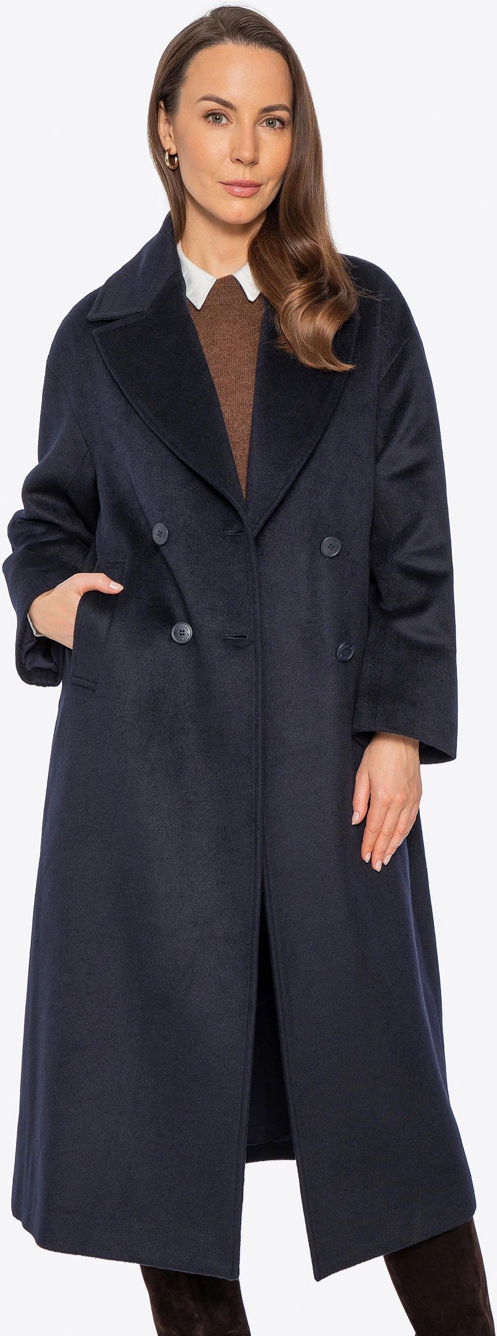 Klasyczny damski płaszcz z wełny granatowy Serock