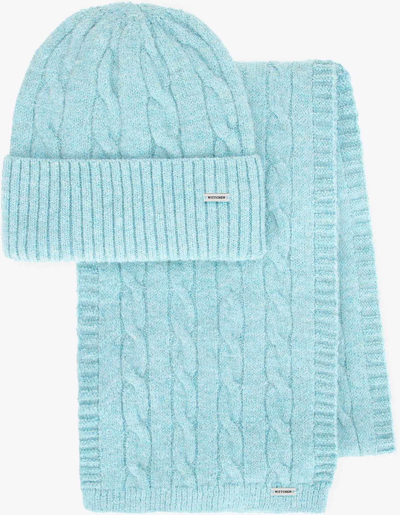 Komplet zimowy damski w warkoczowy wzór niebieski Serock