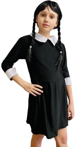 Sukienka czarna z kołnierzykiem Wednesday Adams to idealny wybór dla miłośniczek klasycznego stylu z nutą tajemniczości. Wykonana z miękkiej i elastycznej tkaniny, zapewnia wygodę noszenia oraz dopasowanie do sylwetki. Długi rękaw ozdobiony białym mankietem dodaje sukience elegancji, a …