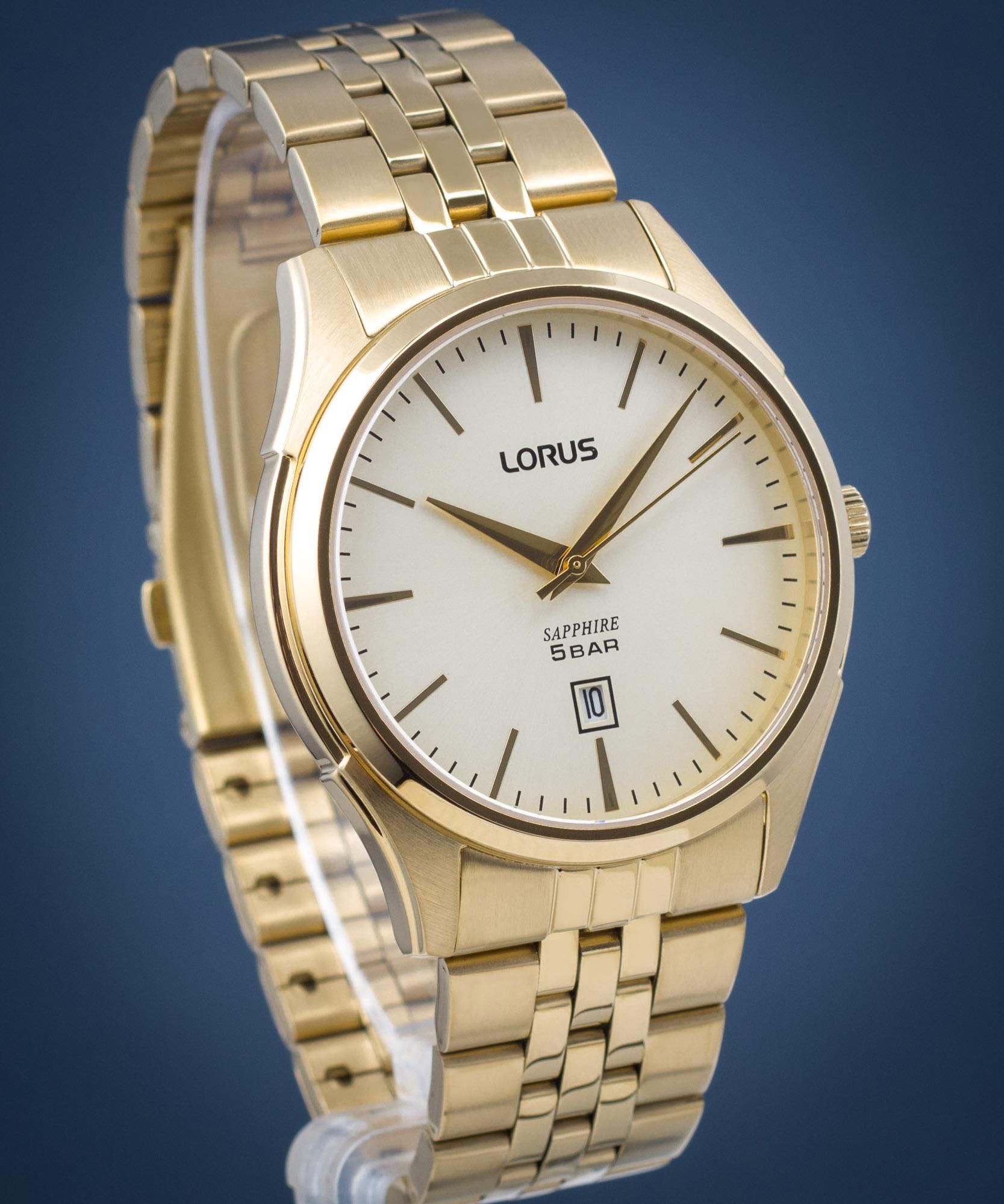 Zegarek męski Lorus Classic RH942NX9 na stalowej bransolecie z szafirowym szkłem wyposażony jest w kwarcowy mechanizm, zasilany za pomocą baterii. Posiada bardzo wysoką dokładność mierzenia czasu +/- 10 sekund w przeciągu 30 dni.Mechanizm japoński mieści się w stalowej, wytrzymałej i pozłacanej kopercie w kolorze złota. W zegarkach Lorus wykorzystany jest jeden z najlepszych stopów stali 316L pozłacany nowoczesną metodą pozłacania. LORUS w produkcji zegarków wykorzystuje technologie powlekania powierzchni PVD (ang. Physical Vapour Deposition - fizyczne osadzanie z fazy gazowej): to bezpieczna dla środowiska i wyjątkowo trwała metoda powlekania. Powłoka PVD charakteryzuje się pięciokrotnie wyższa twardością (1150-1250 Vickersów) niż powłoki wykonywane technika tradycyjna. MECHANIZM: Męski zegarek Lorus RH942NX9 wyposażony jest w kwarcowy mechanizm, zasilany za pomocą baterii. Posiada bardzo wysoką dokładność mierzenia czasu +/- 10 sekund w przeciągu 30 dni. KOPERTA: Mechanizm japoński mieści się w stalowej, wytrzymałej i pozłacanej kopercie. Wykorzystanie wysokiej jakości stali w kopercie gwarantuje, że zegarek odporny jest na korozję i uszkodzenia oraz nie powoduje alergii. SZKŁO: Zegarek wyposażony w szkło szafirowe, które oprócz niezwykłej twardości (stopień 9 w skali Mohsa) charakteryzuje się także odpornością na skrajne różnice temperaturowe i działanie rozpuszczalników. Oprócz tych zalet ma najlepsze właściwości optyczne. Szkło z wysokiej jakości tlenku aluminium. TARCZA: Tarcza w kolorze złotym z wyraźnymi indeksami, idealnie pasuje do całości zegarka. Wskazówki w tym modelu są koloru złota. BRANSOLETA: Wykorzystanie wysokiej jakości stali w bransolecie gwarantuje, że zegarek odporny jest na korozję i uszkodzenia oraz nie powoduje alergii. W zegarkach Lorus wykorzystany jest jeden z najlepszych stopów stali 316L. ZAPIĘCIE: Dzięki standardowemu zapięciu wyposażonemu w klips z wyzwalaczem nie trzeba się obawiać że zegarek mógłby się zsunąć lub odpiąć. Zaś by go szybko odpiąć, wystarczy wcisnąć specjalny przycisk.Eleganckie zapięcie typu klips. WODOSZCZELNOŚĆ: Zegarek z wodoszczelnością 50m (5 ATM), gwarantuje właścicielowi, że nie musi bać się zachlapań, czyli np. mycia rąk. Oprócz tego w zegarku można się kąpać, pływać na basenie itp. Zapraszamy to zapoznania się z pozostałą ofertą zegarków męskich Lorus. > Zegarki damskie Kolekcja dla ludzi podążających za światem, za nowościami. Pragnącymi być zawsze „na czasie”. Nowoczesne paski, wyszukane bransolety, wzory, które są aktualnie modne. Posiadając zegarek z tej kolekcji przyciągasz spojrzenia. Lorus to marka dla ludzi młodych i młodych duchem. Aktywnych, pozytywnie nastawionych do życia i potrafiących się nim cieszyć każdego dnia. Ludzi, dla których zegarek jest czymś więcej niż tylko narzędziem wskazującym czas. Jest czymś, co cieszy oraz wyraża energię i witalność osoby, która go nosi. Lorus charakteryzuje się wysoką jakością mechanizmów, wykonania i ciekawymi projektami. Jest częścią Seiko Watch Corporation i istnieje na międzynarodowych rynkach nieprzerwanie od kwietnia 1982 roku. W ciągu lat swojej działalności zdobyła setki milionów konsumentów na całym świecie. Marka została doceniona w Ameryce Północnej, Europie, Afryce i Oceanii. Nasz sklep internetowy z zegarkami Lorus jest autoryzowanym dystrybutorem marki. Wszystkie damskie i męskie zegarki Lorus zakupione w naszym sklepie posiadają 2 letnią gwarancję i zapakowane są w oryginalne opakowanie.